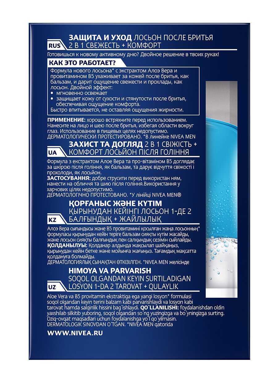 Лосьон после бритья Nivea Men Защита и уход 2 в 1 Свежесть + комфорт 100 мл 2 в 1 Защита и уход 100 мл