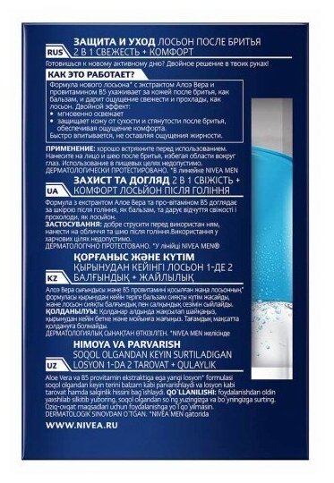 Сервис сравнения цен СкидкаГИД предлагает сравнить цены на товар «Лосьон после бритья Nivea Men Защита и уход 2 в 1 Свежесть + комфорт 100 мл 2 в 1 Защита и уход 100 мл»