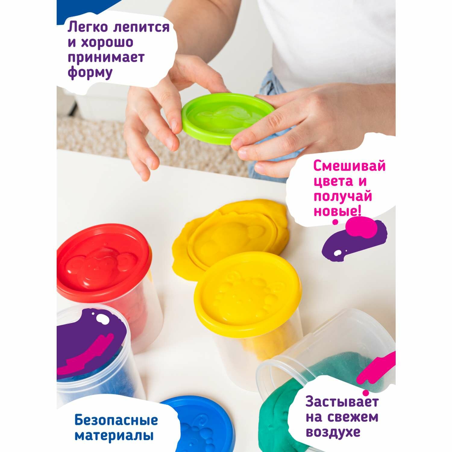 Пластилин быстро высыхает, не имеет запаха, не липнет к рукам и одежде, легко смывается, а так же легко смешивается, что позволяет получать новые цвета. В крышке каждой баночки помещена готовая форма для лепки, с помощью которой ваш ребенок сможет легко самостоятельно сделать фигурку.