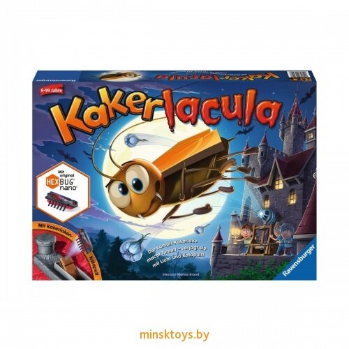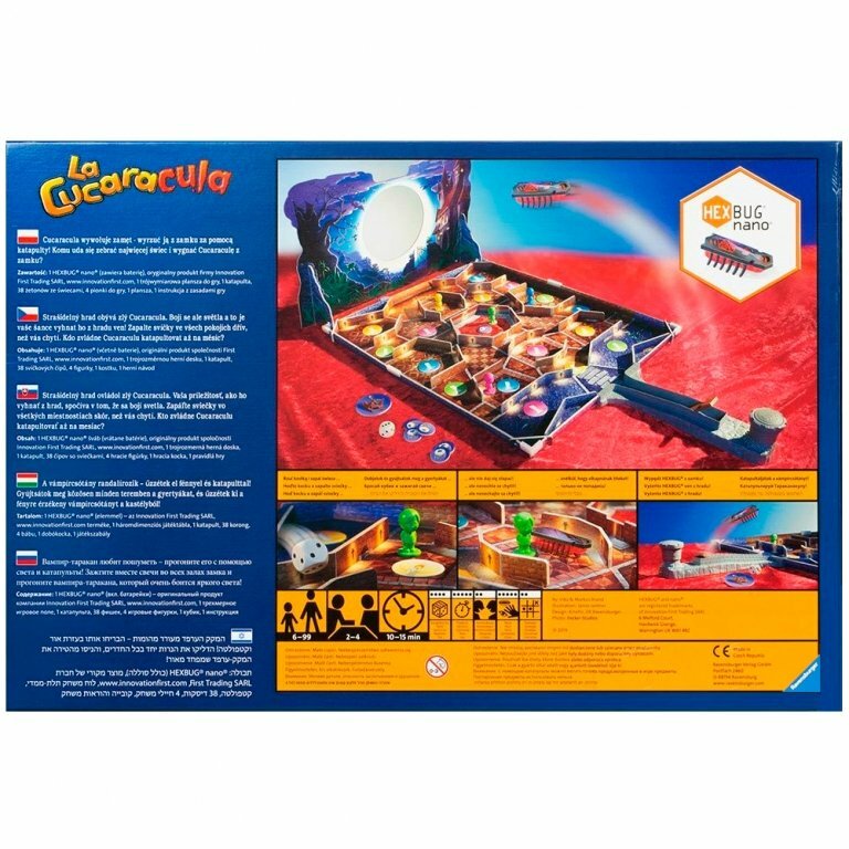 Ravensburger Настольная игра Кукаракула Что это было? Это Кукаракула вампир HEXBUG, о котором все говорят? Вы достаточно смелы, чтобы принять вызов и катапультировать Кукаракулу из замка с привидениями? Пробирайтесь по комнатам замка, зажигая свечи, но остерегайтесь Кукаракулу, которая ненавидит свет и постарается остановить вас! В конце игры вы присоединитесь к соревнованию по катапультированию, отправляющему Кукаракулу на Луну! Кто же поймает Кукаракулу? Особенности: 1 HEXBUG nano включая батарею. 1 трехмерная игровая доска. 1 катапульта. 38 дисков со свечами. 4 игровые фишки, 1 кубик