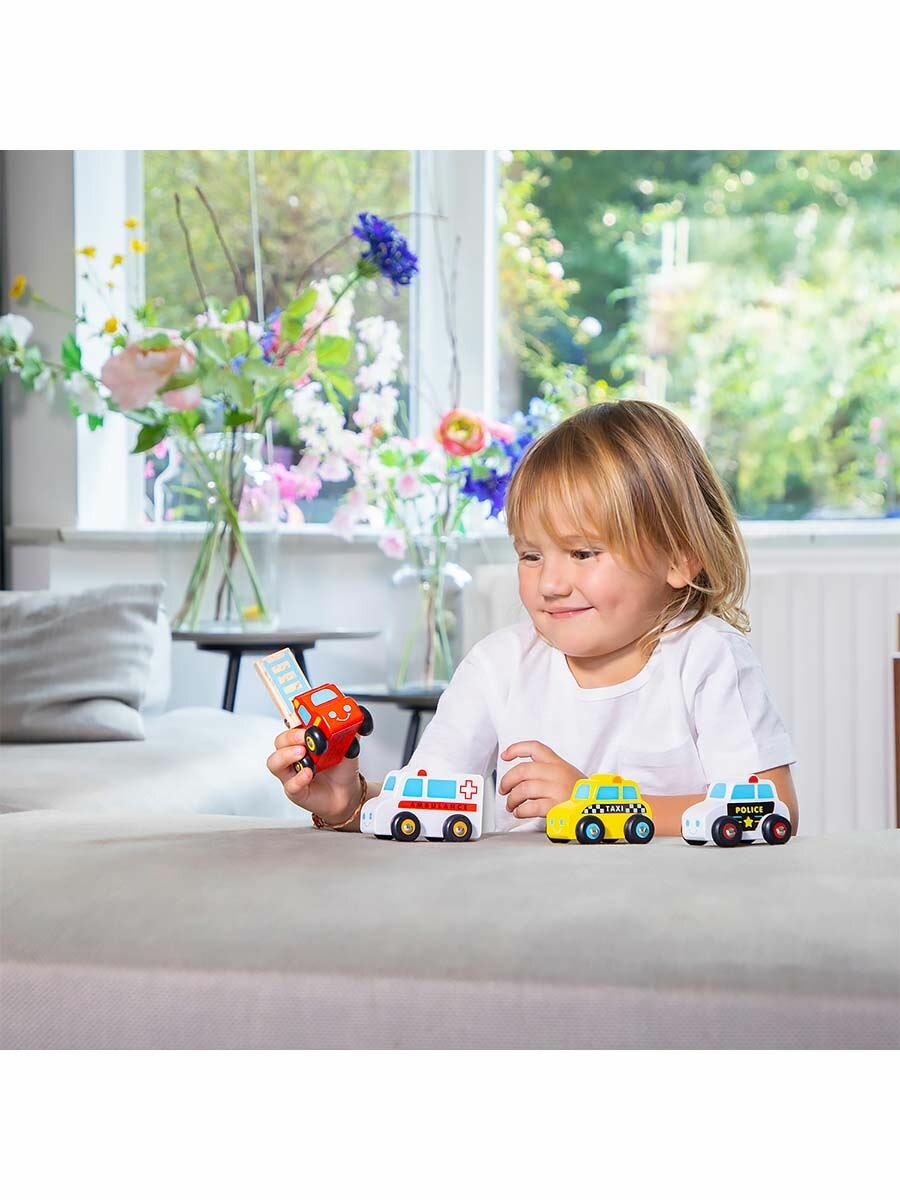 Машинки – любимые игрушки мальчишек во все времена.Набор игрушечных машинок Viga Toys Спецтехника порадует ребенка разными видами транспорта.В комплекте есть деревянные такси, скорая помощь, экскаватор, полицейская машина, пожарная, грузовая.Сюжетно-ролевые игры с игрушечной спец техникой позволяют детям легко представить себя водителями тренируют воображение, укрепляют мышцы и двигательные навыки. Это также отличный повод для общения малышей, развития социальных навыков, умения делиться.У деревянных машинок есть подвижные элементы – рабочие части.Поверхность игрушек гладкая и приятная на ощупь, все края закругленные.