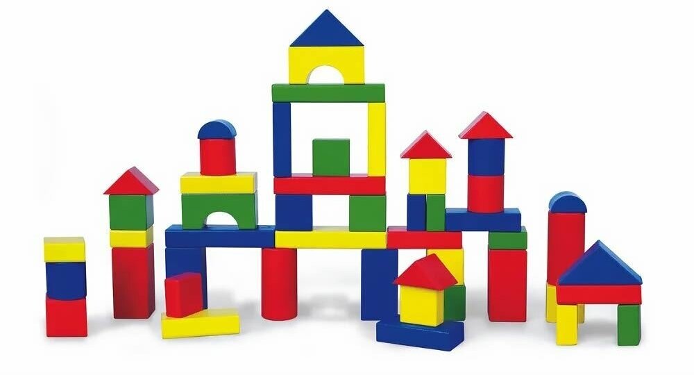 Классический деревянный конструктор с кубиками, кирпичиками, крышами, арками, цилиндрами. Такой конструктор можно использовать для постройки различных домиков, башенок, замков. Большое количество деталей позволяет придумывать и возводить достаточно сложные постройки. Игра с деревянным конструктором тренируем мелкую моторику рук, глазомер и пространственное воображение ребенка. Детали не соединяются друг с другом, поэтому нужно быть аккуратным и расчетливым при постройке.