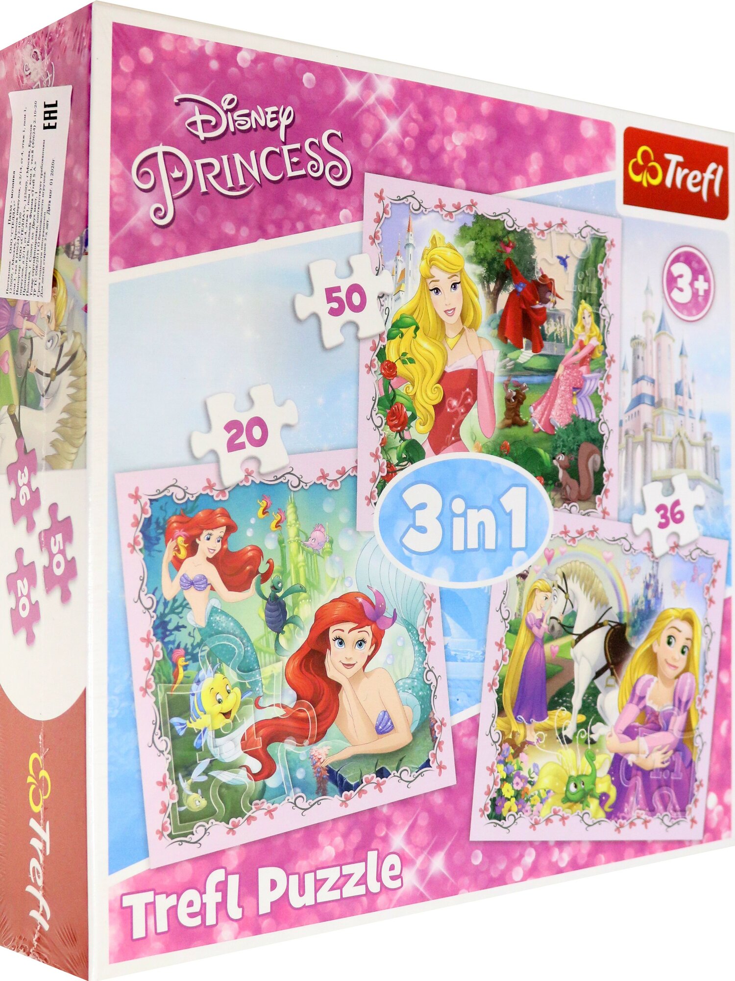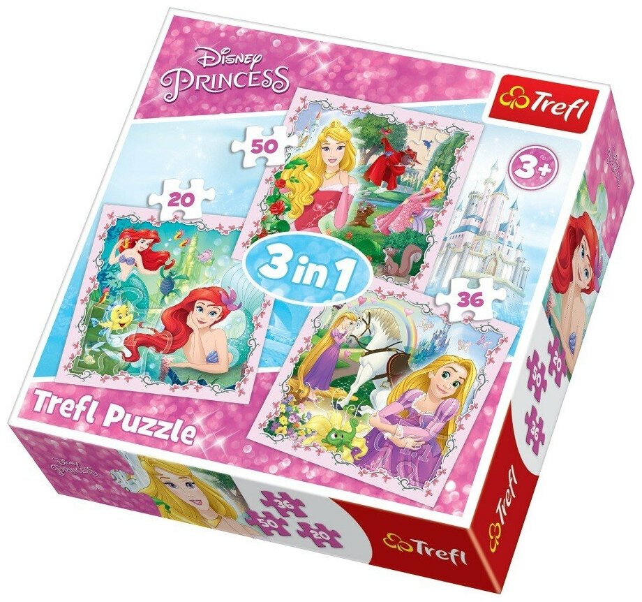 Пазл Trefl 3 в 1 Рапунцель Аврора и Ариэль (34842)