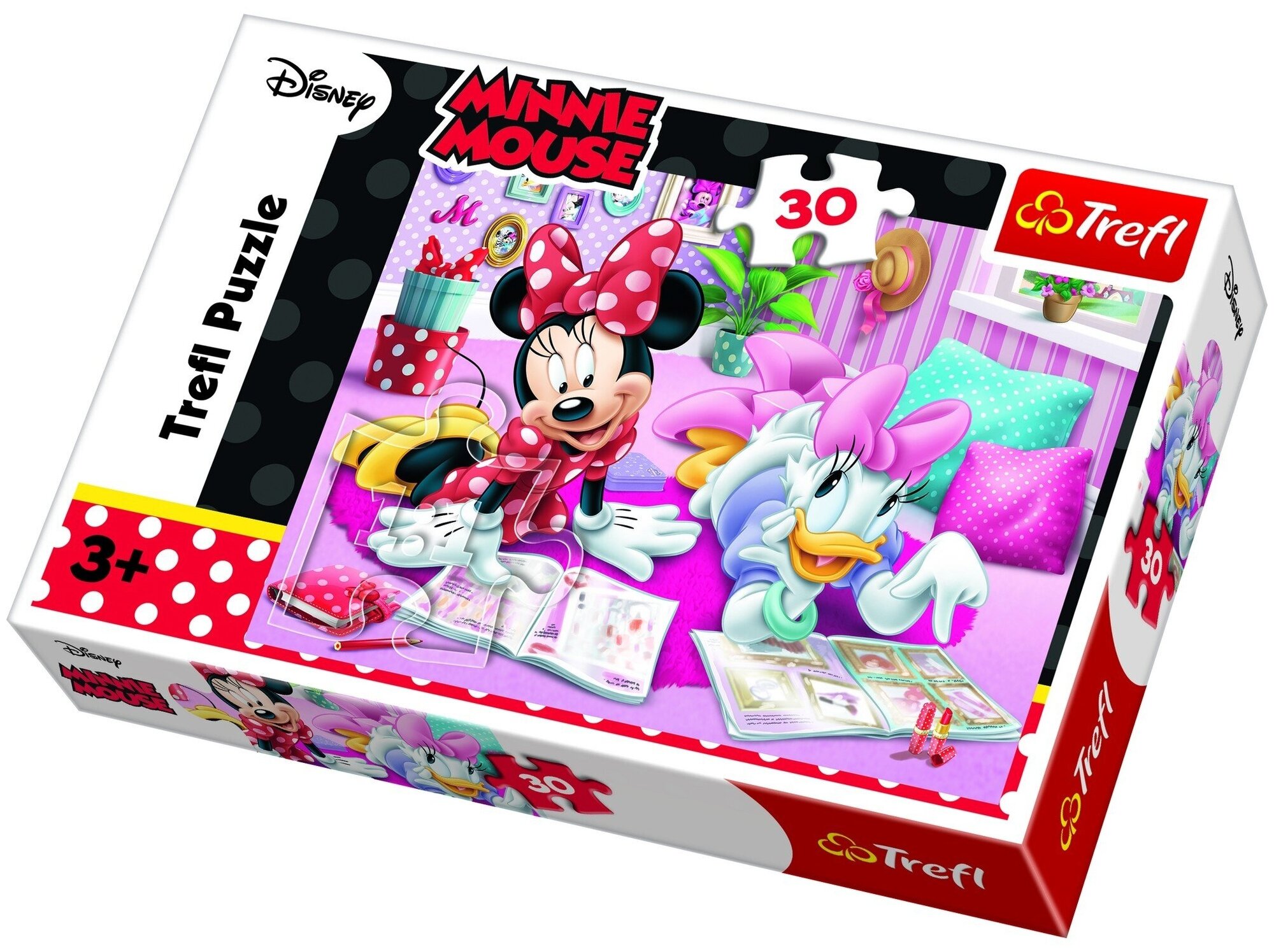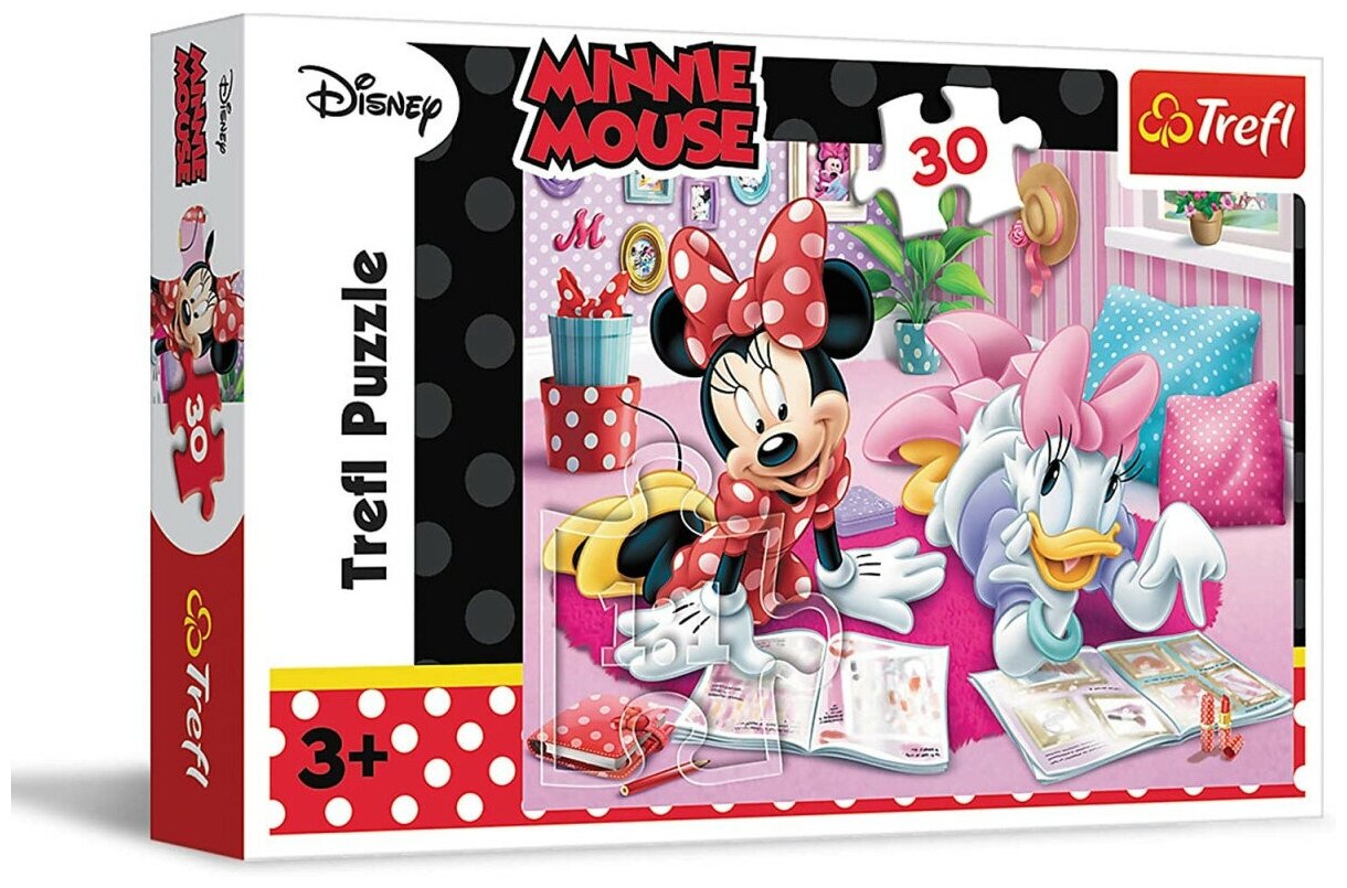 Встреча двух очаровательных подружек Минни Маус и Дейзи Дак в яркой и уютной комнате непременно привлечет внимание маленькой любительницы мультфильмов Уолта Диснея! Пазл «Лучшие друзья» состоит из 30 прочных и приятных на ощупь деталей, которые с легкостью соединяются друг с другом. Крохе будет интересно находить красочные детали с геометрическими узорами и соединять их вместе. Занятия с головоломкой разовьют цветовосприятие, внимательность, усидчивость, логику и память ребенка. Подарите вашей малышке прекрасное настроение и новые впечатления вместе с пазлом от известного бренда Trefl.