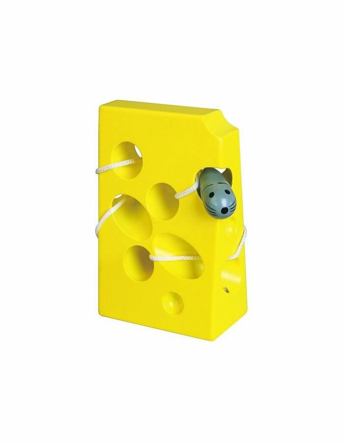 Великий «шмат сиру» з дерева - відповідно це тверда і не легка (як зазвичай пластикові) іграшка, що потрібно мати на увазі. Відповідає опису товару на сайті. Дитина у 1 рік і 2 міс з цікавістю грається і легко пронизує шнурок з мишкою у дірки в сирі та виймає назад - іграшка сподобалась і дитині, і батькам. Шнур на якому тримається мишеня має з’єднання, яке не заважає, але не зрозуміло для чого потрібне і легко роз’єднується (можливо, це якось пов’язано з безпекою)