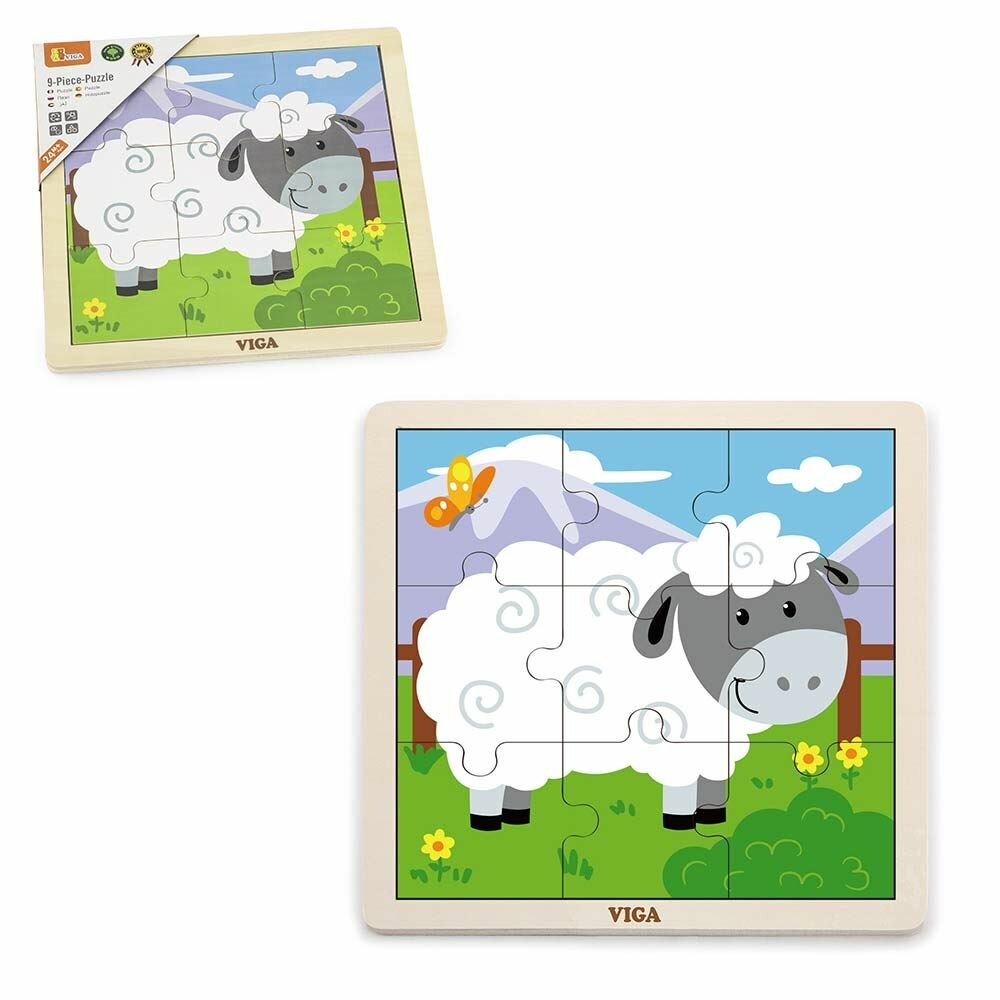 Деревянный пазл от Viga Toys Овечка – классическая развивающая игрушка для детей от 2 лет! Состоит из 9 деталей в деревянной рамке. Ребенку нужно собрать Овечку. Что дает ребенку сложение такой простой головоломки? Малыш получает как эстетическое удовольствие, так и практическую пользу. Во-первых, он расширяет кругозор: в деталях может рассмотреть и запомнить, как выглядит овечка. Во-вторых, он развивается умственно: тренирует воображение, логическое и образное мышление, учится увязывать части и целое. Детские пазлы – универсальная полезная игра. Их используют дома и в детских садах, центрах развития. Пазлы отлично сочетаются с методикой Монтессори. Деревянный пазл Viga Toys Овечка из 9 элементов изготовлен из качественной и тщательно отшлифованной древесины, покрыт безопасными красками. Выполнен в соответствии со стандартами детских игрушек EN71 и ASTM. Размер квадратного пазла с основанием 22,5 см, толщина 1 см.