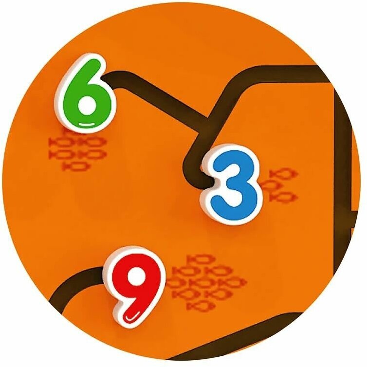Эта настенная развивающая игрушка предлагает малышам, используя логику и навыки счета, правильно разместить цифры проведя их через лабиринт к нужной позиции. Цифры нужно разместить в соответствии с количеством рыбок-подсказок в конце каждой дорожки.