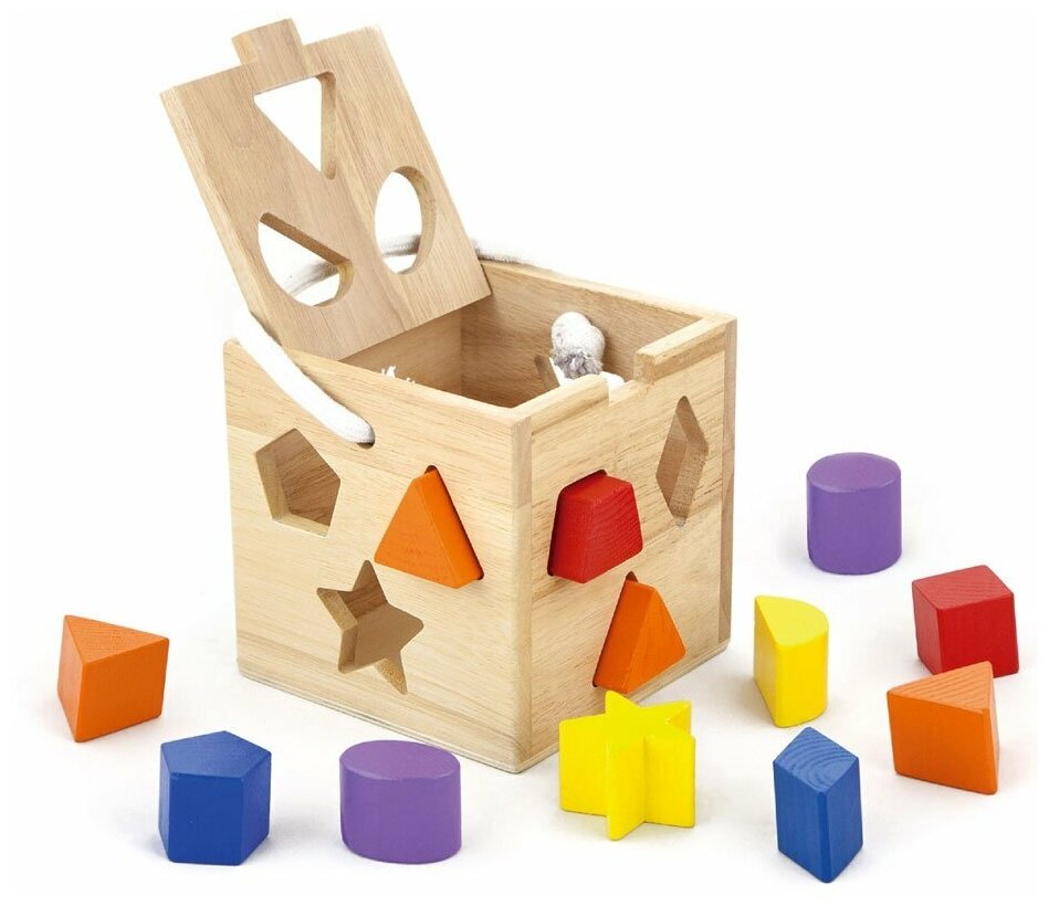 - Деревянный сортер Viga Toys Кубик с фигурами (53659)