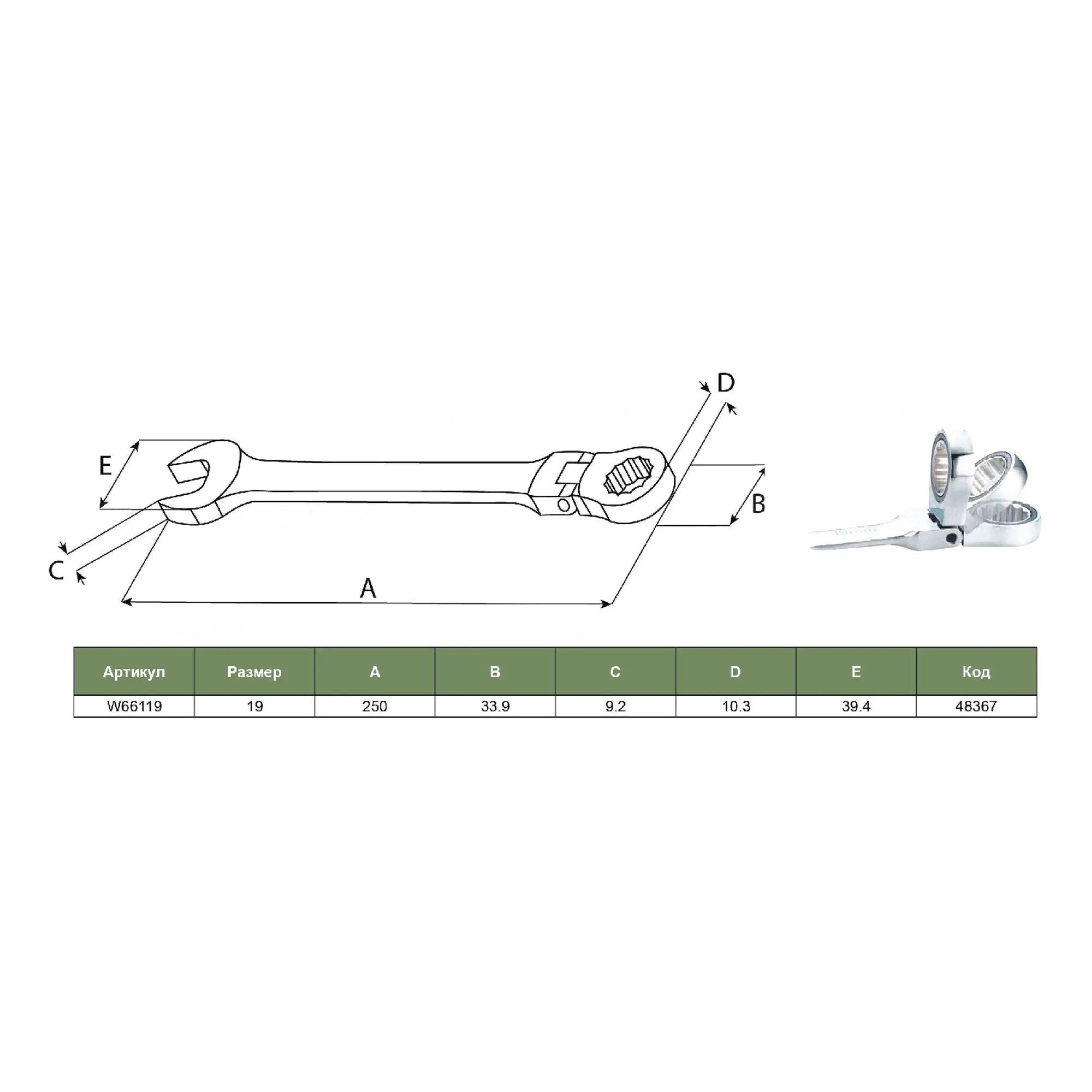 Комбинированный трещоточный карданный ключ Jonnesway W66119
