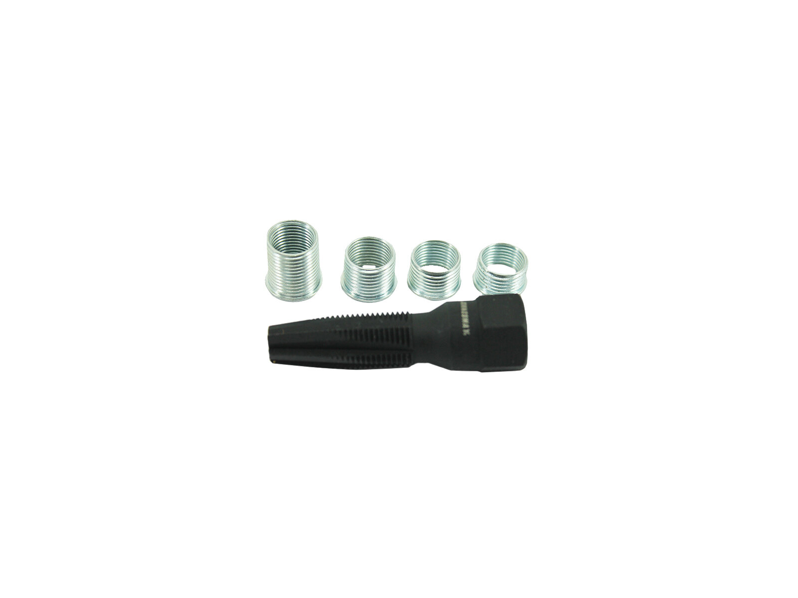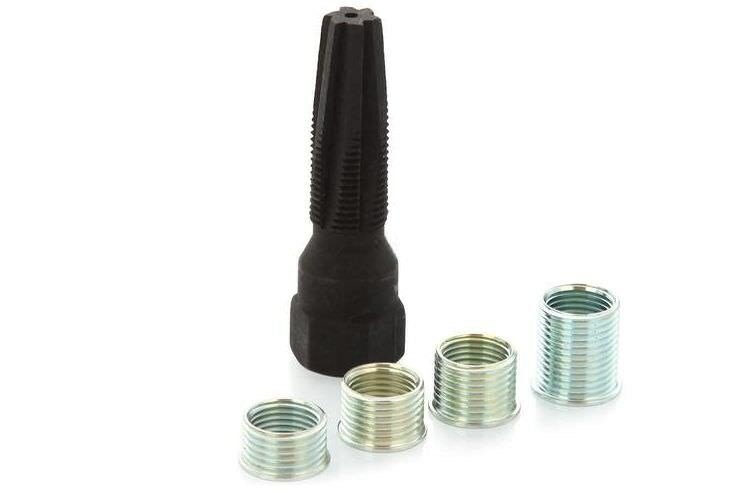 Набор применяется для ремонта разрушенной резьбы свечных отверстий алюминиевых головок блоков цилиндров бензиновых ДВС. С помощью входящего в комплект метчика нарезается новая резьба и в полученное отверстие устанавливается тонкостенная резьбовая втулка (футорка) для свечей зажигания с резьбовой частью М14х1,25.