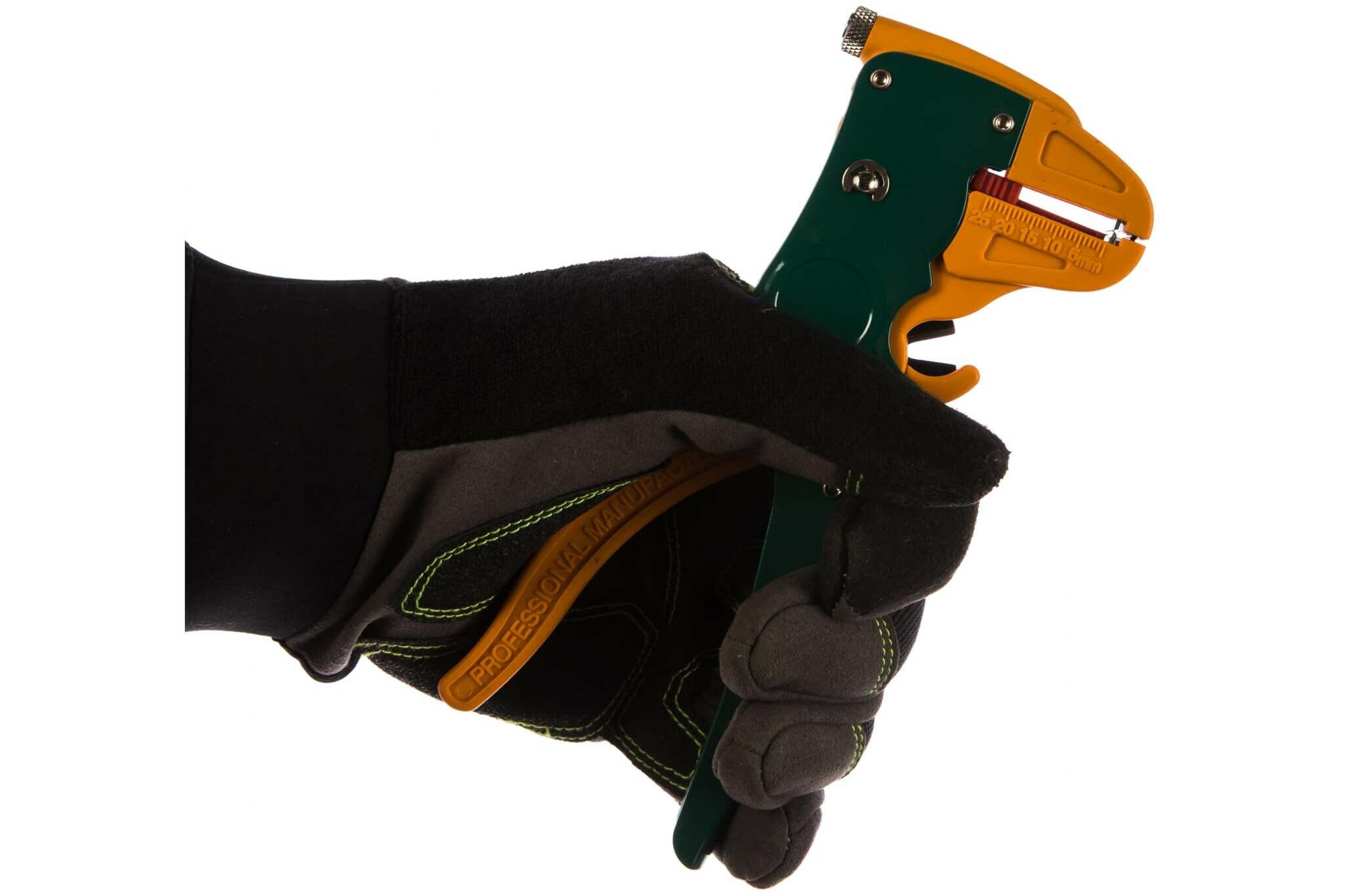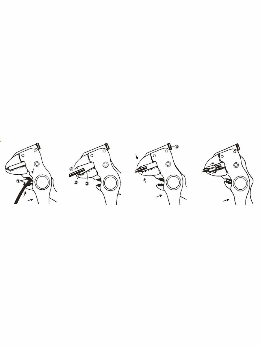Полуавтоматический инструмент, сочетающий в своей конструкции резак для проводов и устройство для снятия изоляции за одно движение оператора. Необходимую длину срезаемой изоляции можно определить по линейке, расположенной на губке инструмента.
