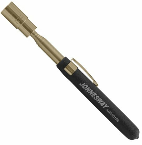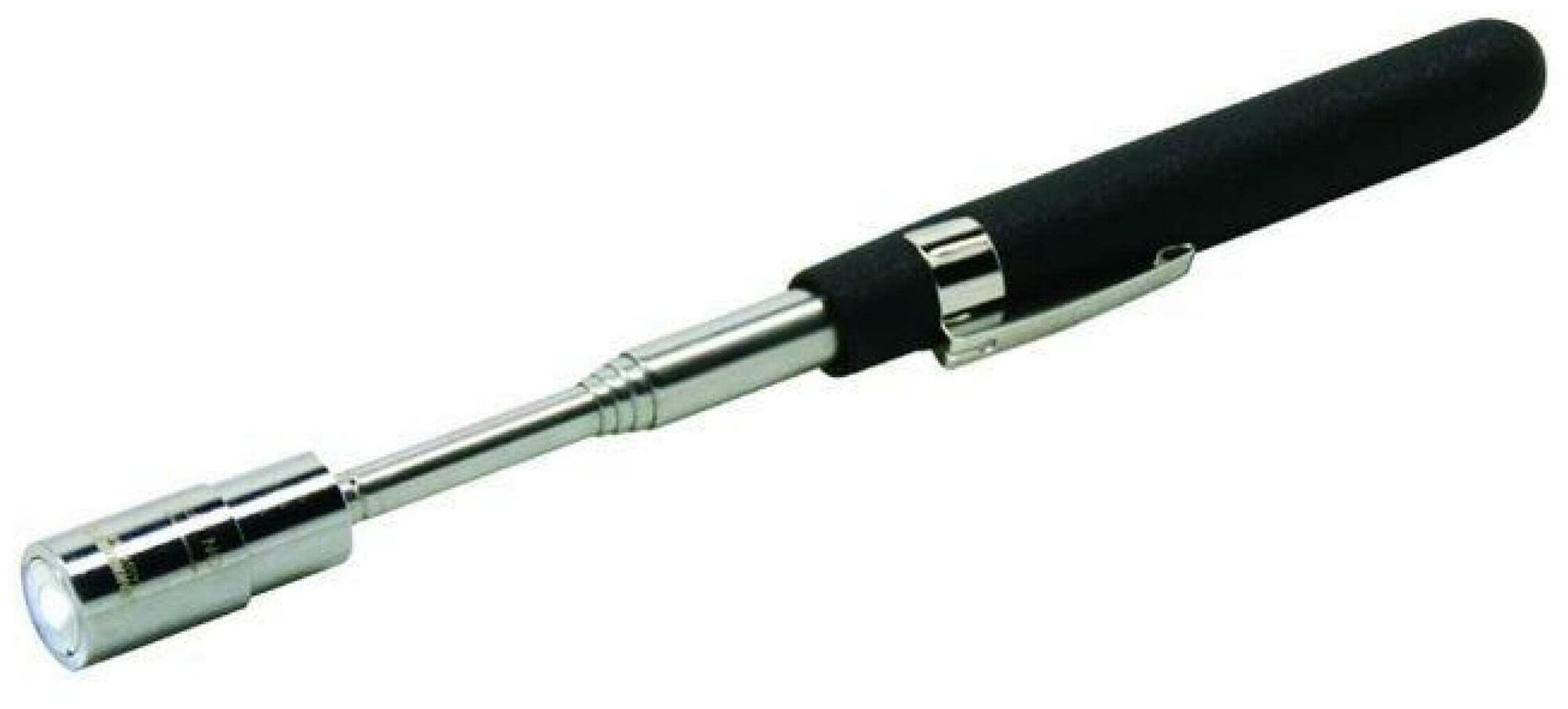 Магнитная рукоятка с телескопической стрелой с максимальным вылетом 690 мм. В торце телескопической части установлен мощный неодимовый магнит, позволяющий удерживать железосодержащие детали массой до 2 кг. Корпус магнита одновременно является патроном лампы подсветки и контейнером для элементов питания типа LR44 (AG13). Инструмент применяется для извлечения предметов из труднодоступных, затемненных мест. Для удобства хранения инструмента в кармане, обрезиненная рукоятка снабжена зажимом.