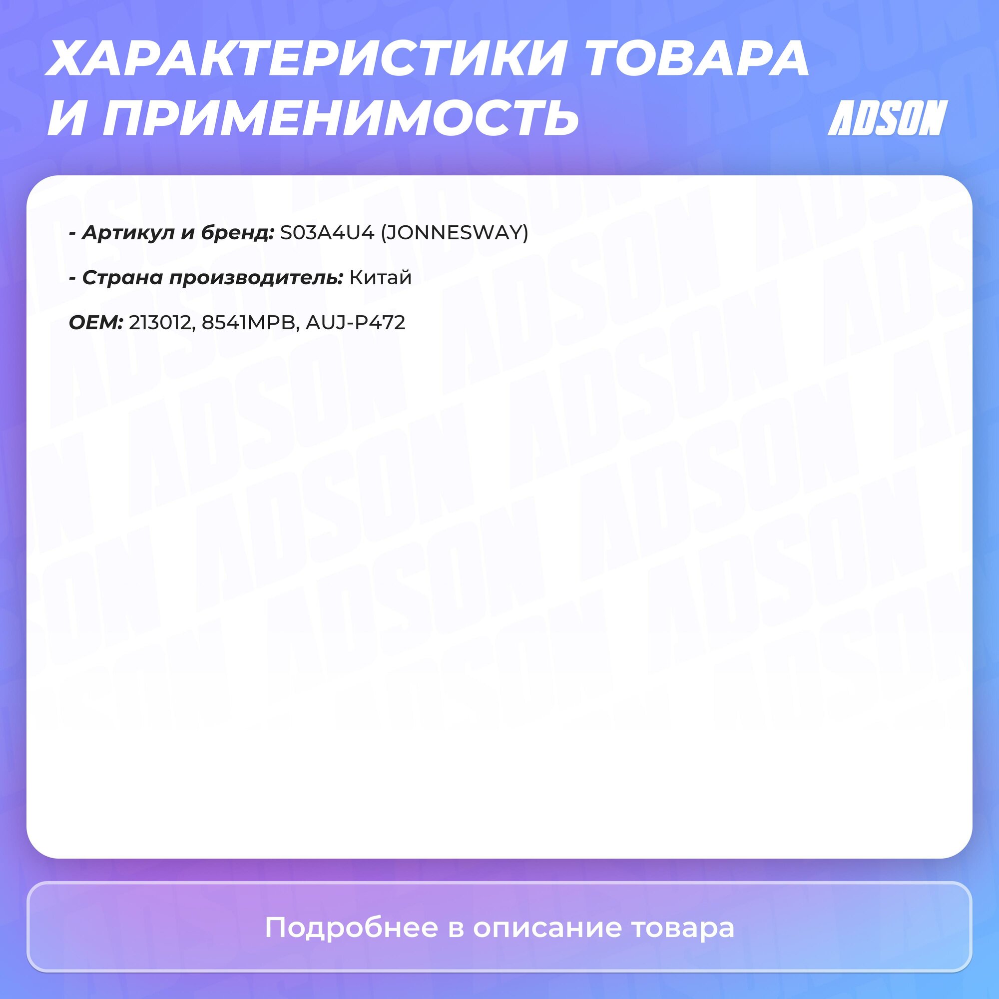 Тип товара: Ударный кардан