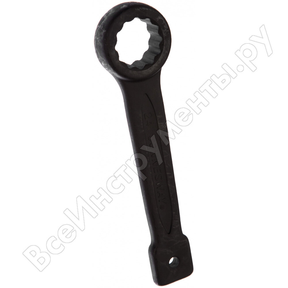 ОписаниеСпециальный гаечный ключ, применяемый для обслуживания экстремально нагруженных и крайне осложненных резьбовых соединений больших размеров. Изготовлен из особой леги-рованной, хромомолибденовой стали. Ключ устойчив к высоким ударным нагрузкам при передаче импульса на крепеж. Изделие соответствует ГОСТ 4543-71, имеет матовую финишную отделку и магниевое фосфатирование. Большое количество зубьев на накидном ударном ключе (24 мм) Jonnesway CrMo обеспечивает надежный захват детали. Инструмент имеет покрытие стали чернением, что обеспечивает ему высокую защиту от коррозии и отличный внешний вид.Область примененияКлючи гаечные кольцевые ударные (кгку), или просто ударные ключи – разновидность накидных (кольцевых) гаечных ключей, одна из рабочих поверхностей которых предназначена для ударных воздействий с целью увеличения усилия при работе с тугими крепежными соединениями в случаях, когда применение длинного рычага или иные способы нежелательны либо невозможны. Ручка таких ключей выдерживает ударное воздействие без вибраций, изгибов и разрушения. Это делает такие ключи широко применимыми и востребованными, в том числе для промышленного использования.Размеры