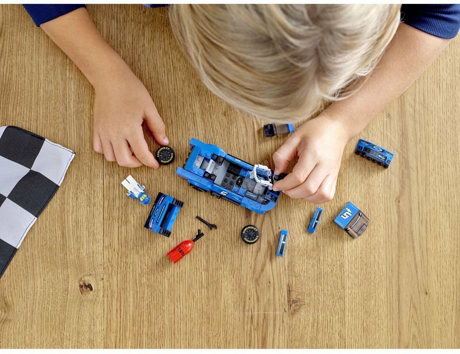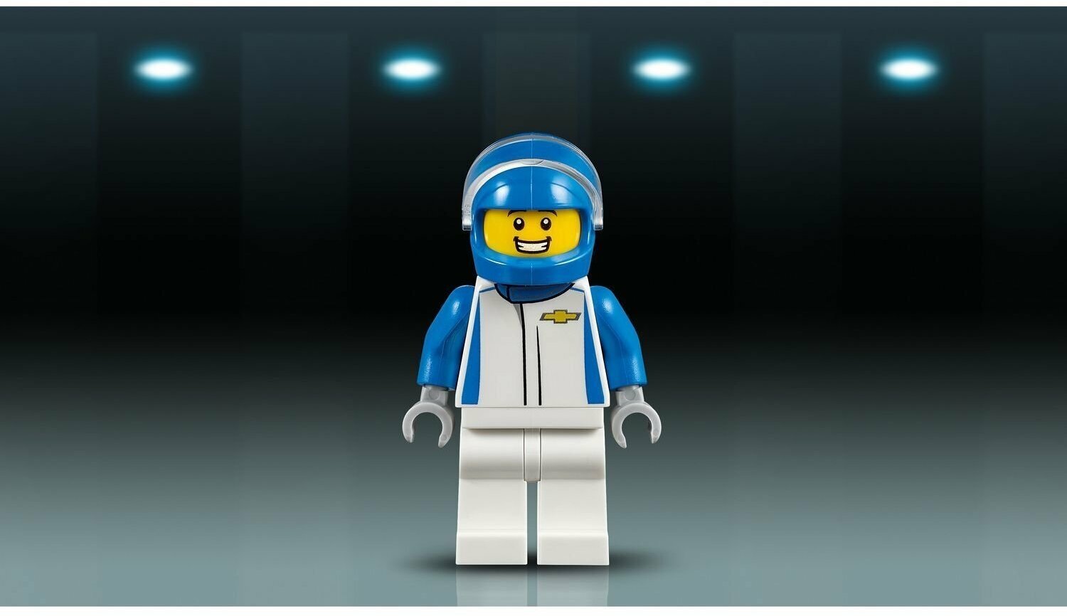 Увидел на сайте оригинальный конструктор Лего. Купил. Оказалось новинка этого года. Гоночный автомобиль Шевроле Камаро в аутентичном дизайне. Детали кузова глубокого синего цвета. Колеса резиновые, черного цвета с логотипом. Номерные наклейки на дверях и крыше. Собирается машина легко и быстро. Инструкция понятна ребенку. Лобовое стекло поднимается. Подвижная защитная клетка, подняв которую гонщик садится внутрь. В наборе прилогаются так же канистра для топлива, огнетушитель и гаечный ключ. Человечек одет в сине-белую форму, голова защищена шлемом. Сбор этой машинки превращается в увлекательную игру, которая переходит в захватывающую гонку. Рекомендован детям от 7 лет. В комплекте 198 элементов.