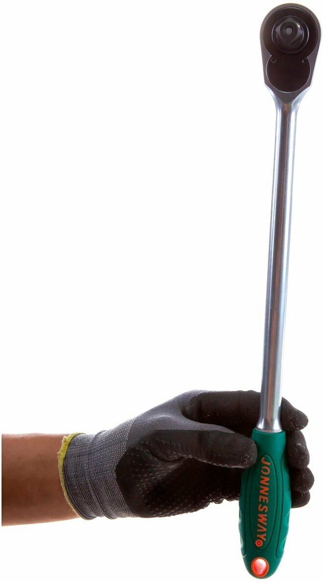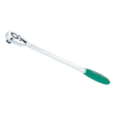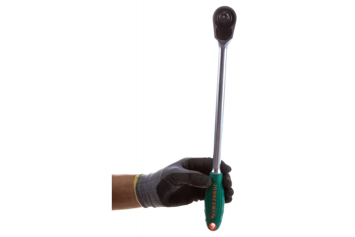Трещоточная рукоятка удлиненная Jonnesway применяется при производстве работ со слабонагруженными резьбовыми соединениями. Не имеет альтернативы (за исключением трещоточных ключей) при использовании в ограниченных рабочих пространствах.Преимущества: Имеет малый 7,5° обратный ход, тройной храповик-коромысло Устройство быстрого сброса надежно фиксирует насадку на приводе и легко от нее освобождается одним нажатием на кнопку «Сатиновое» хромоникелевое покрытие защищает от коррозии и продлевает срок службы инструмента Рукоятка снабжена флажковым переключателем и композитной ручкой, с мягким, сантропеновым покрытием, обеспечивающим надежное удержание инструмента увлажненной или загрязненной рукой Увеличенная длина рукоятки экономит силы оператора при обслуживании нагруженных и осложненных резьбовых соединений