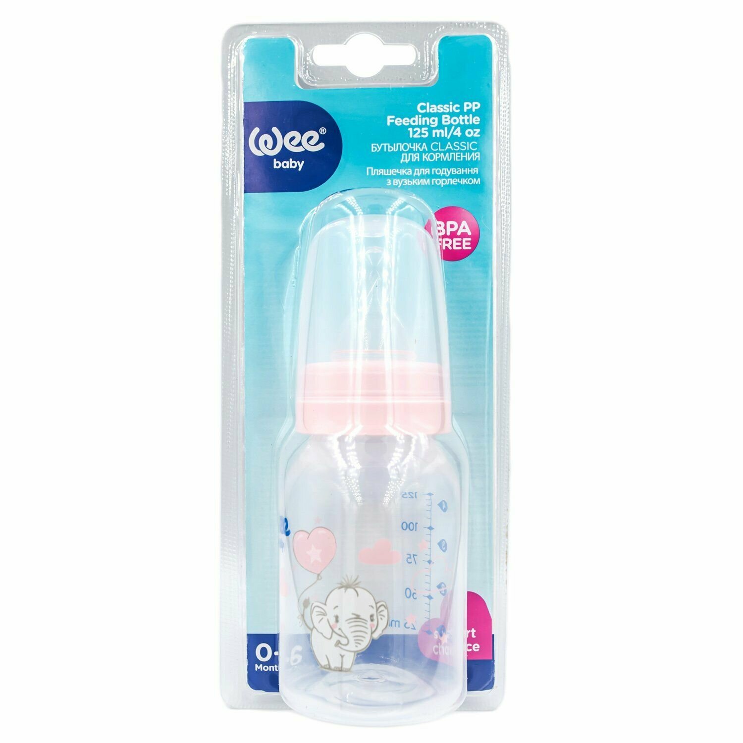 Бутылочка для кормления Wee Baby из полипропилена c силиконовой соской 125 мл розовый (851-pink)
