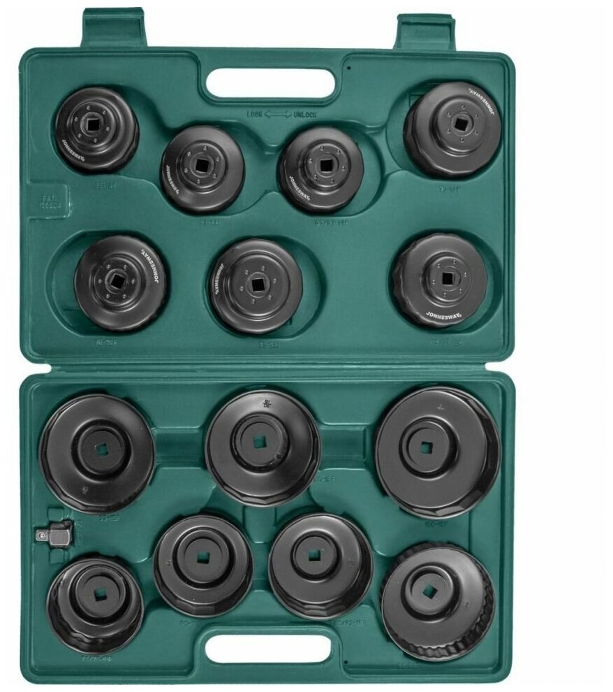 Расширенный набор чашек для снятия корпусных масляных фильтров. Комплектация набора позволяет использовать инструменты для обслуживания наиболее популярных типоразмеров масляных фильтров различных производителей фильтров и автомобилей.