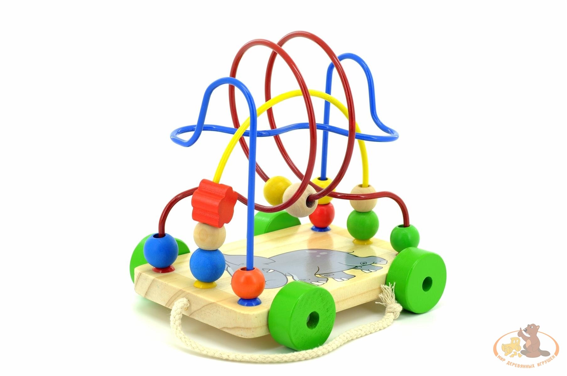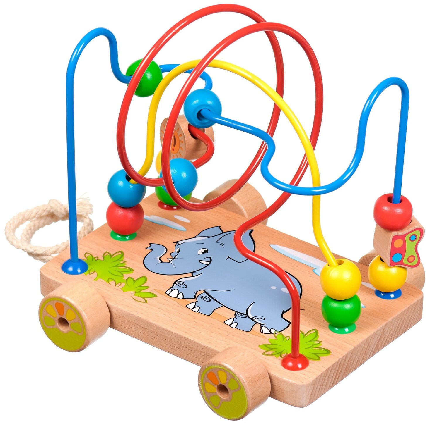 Цель ребенка в игре - передвигать по проволоке деревянные элементы, это очень увлекательно и надолго займет даже самого непоседливого крошку. А если поднадоели логические эксперименты, всегда можно просто покатать машинку за веревочку.