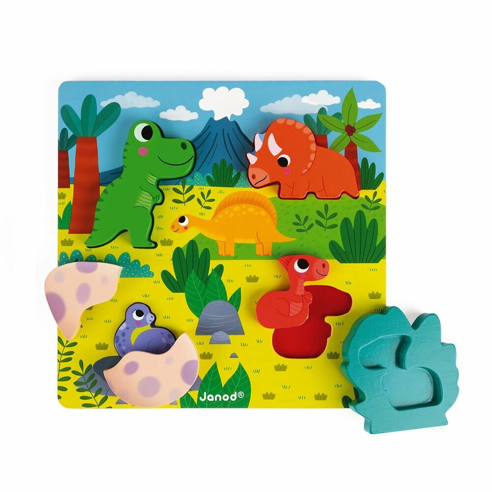 Пазл-вкладыш Janod Динозавры (J07054) Пазл Динозавры (размер: 30х2,1х21)