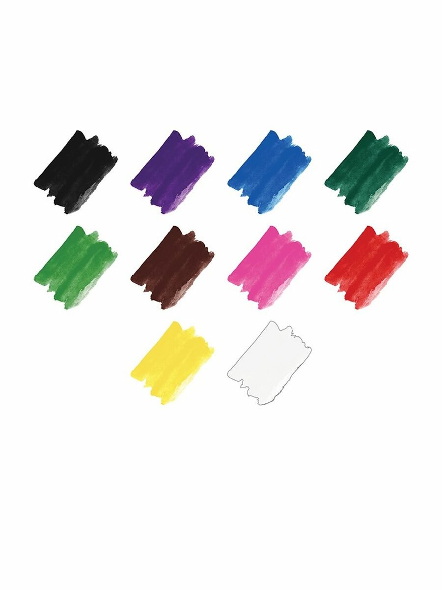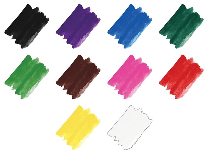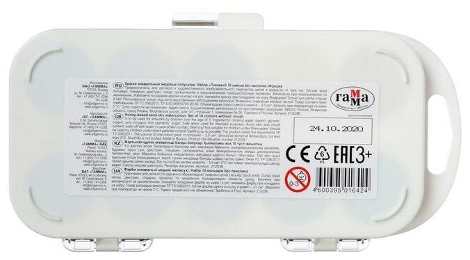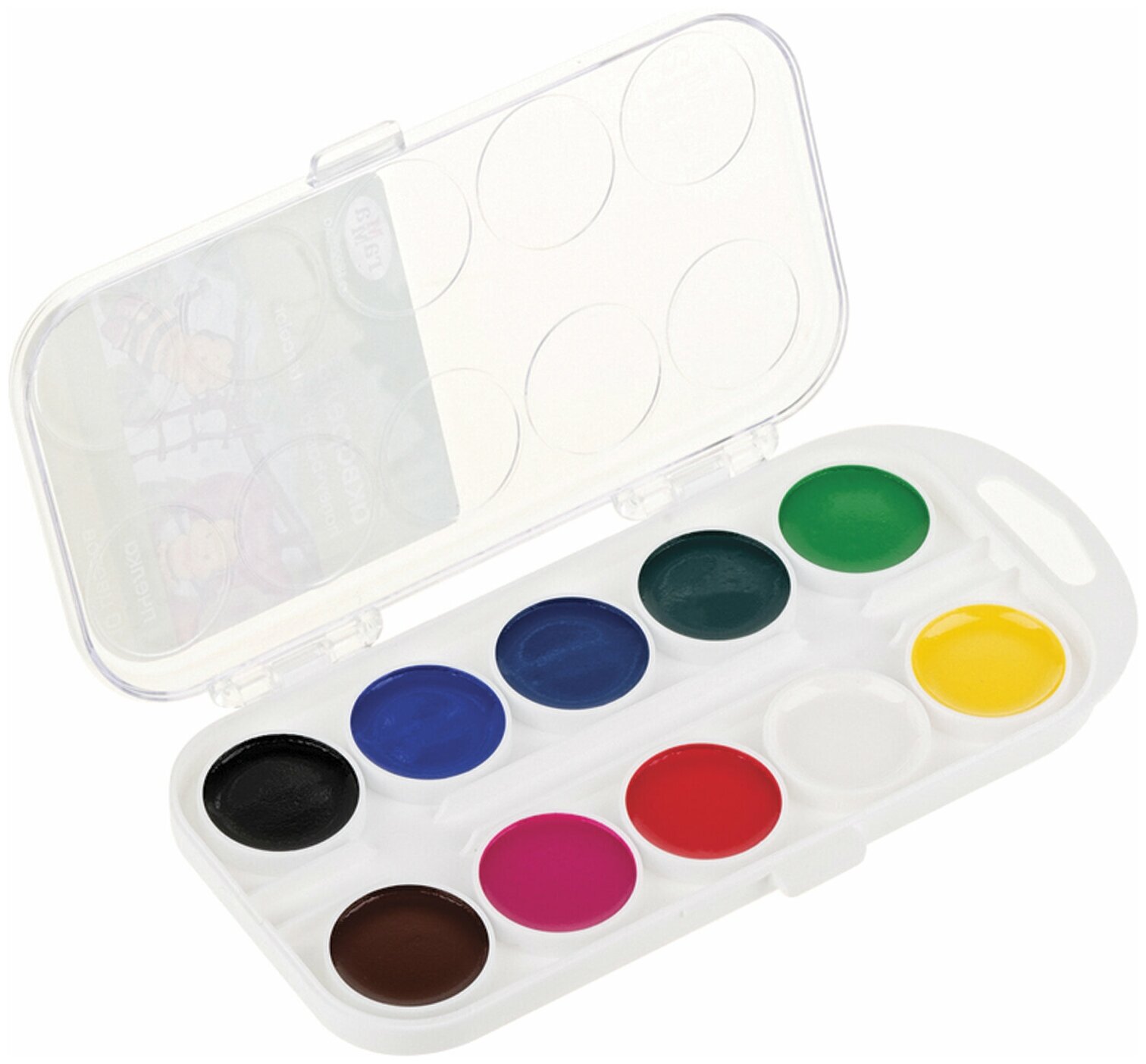 10 цветов акварели упакованны в удобную пластмассовую коробочку с прозрачной крышечкой. Пластик хорошего качества, не имеет неприятного запаха, прочный, гладкий. Крышка хорошо закрывается и открывается.
