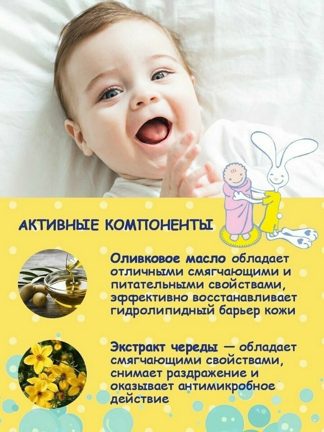 Описание товара:С первых дней жизни. Не вызывает аллергических реакций. С чередой. Предназначена для детей любого возраста, начиная с рождения, а также для взрослых и детей с чувствительной кожей и склонных к аллергии. Не содержит: щелочь, краситель, запрещенные ингредиенты. Бережно очищает. Смягчает и увлажняет. Не щиплет глазки. Создает пышную и мягкую пену. Не сушит и не раздражает кожу. Имеет естественный РН. Активные компоненты: экстракт череды снимает воспаление и зуд, способствует стимуляции ранозаживления, оливковое масло смягчает, питает и увлажняет кожу. Не вызывает аллергических реакций. Доказано. При использовании в соответствии с рекомендациями производителя. Подходит для частого применения.