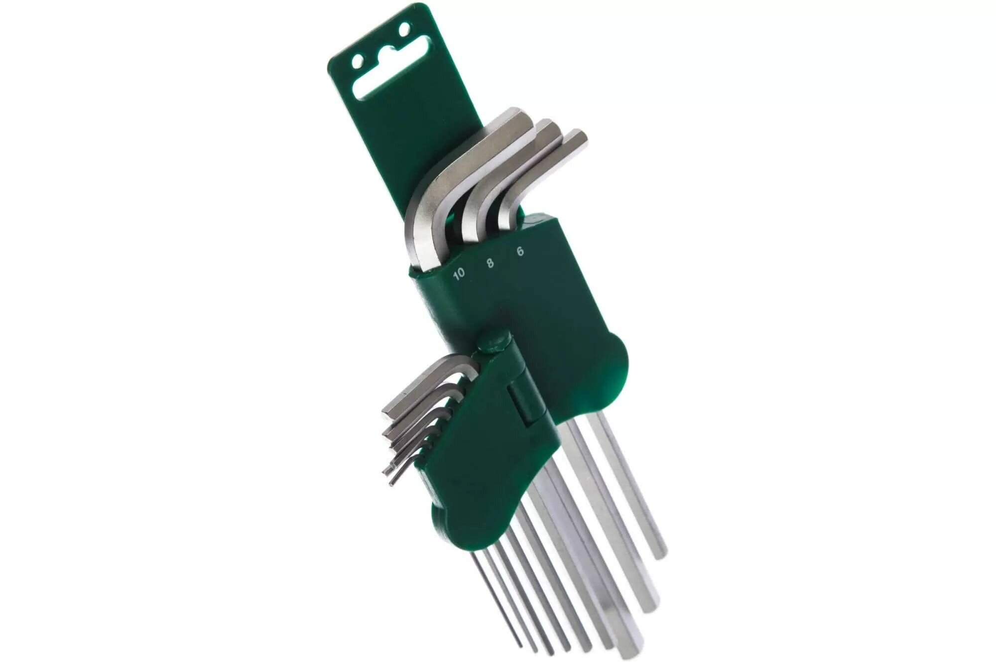 Комплект угловых шестиграников LONG 1,5-10 мм из 9 предметов. Согнутый под углом 90° стержень с рабочими профилями одного размера на обоих концах, сочетает в себе относительное удобство использования с возможностью приложения значительных рабочих нагрузок, когда в качестве ручки используется длинная часть и работу в труднодоступных местах, когда в качестве воротка используется короткая. Комплект угловых шестигранников удлиненных "" изготовлен из стали S2 в соответствии с требованиями ГОСТ 11737-93, имеет матовое хромоникелевое покрытие. Набор применяется для работы с внутренним шестигранным профилем.