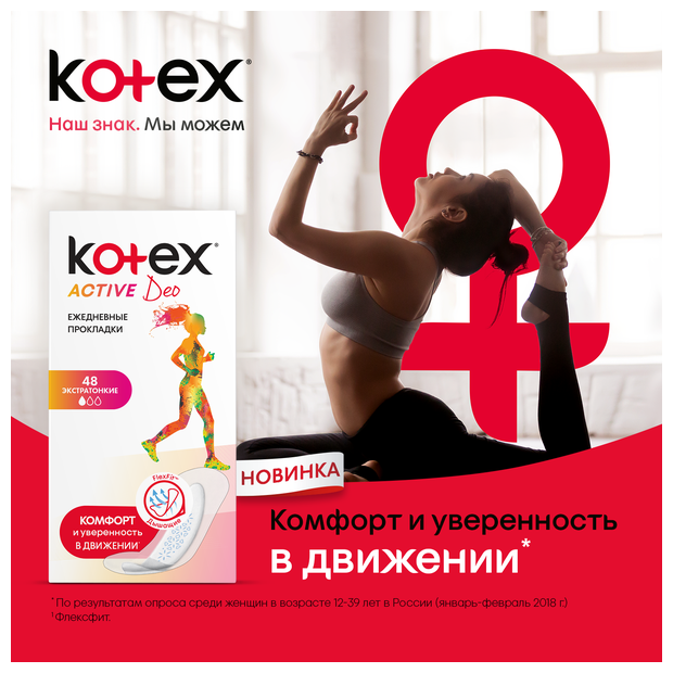 Новые экстратонкие ежедневные прокладки Kotex Active Deo (Котекс Эктив Део) созданы специально для активных девушек.