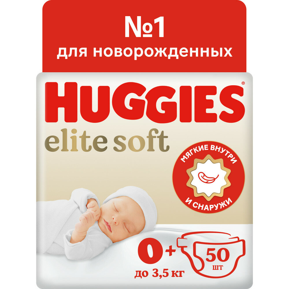 Подгузники Huggies Elite Soft 0+ (до 35 кг) 50 шт. (9400128) (размер: NB/0)