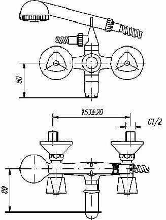141-0055-35/ Смеситель для ванны, литой, L: 110 мм, шланг 1,5м, Basic, керам.