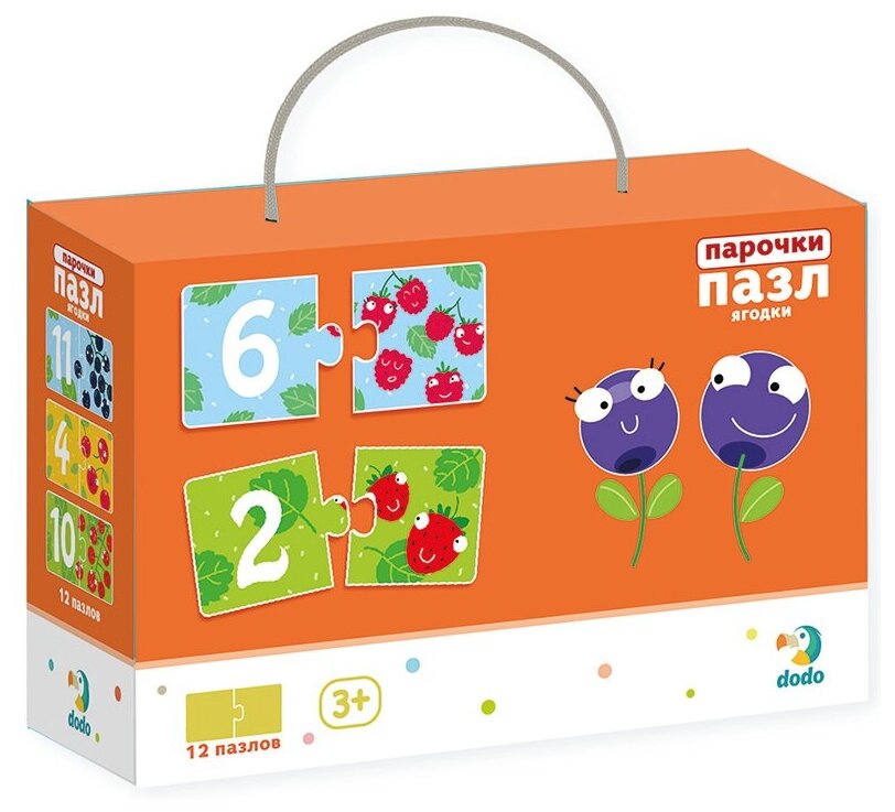 Dodo Пазл-парочки для малышей Ягодки (24 элемента) очень понравится ребенку. Из пазла необходимо составить 12 картинок. На них изображены различные ягодки и соответствующая их числу цифра. Задача малыша правильно находить парочки и соединять их между собой. Игра позволит развивать у малыша внимательность, терпение, зрительное восприятие, логическое мышление.