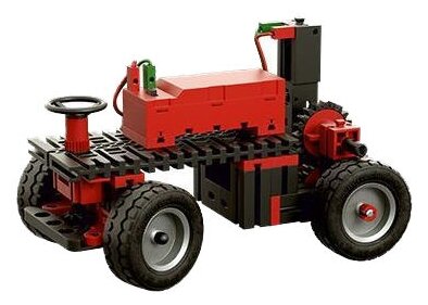 Конструктор Конструктор fischertechnik стал приятной находкой для изучения механизмов в действии. В нем целая куча мелких интересных деталей, способных увлечь на много вечеров. Попросил купить его сынишка, а нашла на МоЙо. Весь набор состоит из нескольких построек и грузоподъемной машинки при чем каждая конструкция обладает своим механизмом, который в свою очередь приводит в действие маленькая батарейка. Можно построить подъемный кран с крюком который ездит и опускается, Какой-то мотор или станок в котором все шестерни крутятся, а на подъемнике помимо подъемного механизма еще и колеса поворачиваться и он может ездить. Благодаря сбору понимаешь как все работает изнутри.