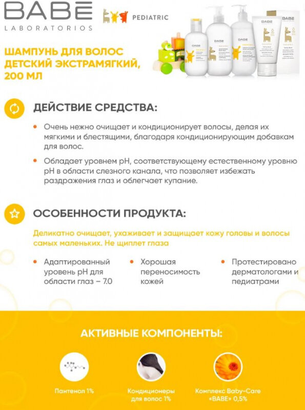 Детский шампунь Babe Laboratorios Pediatric Экстрамягкий 200 мл