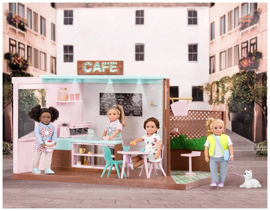 Игровой набор Кафе станет интересным и полезным дополнением к куклам Lori 15 см. Кукла Лори может пригласить подружек на вкусный кофе и пирожные. Набор выполнен в реалистической манере: в кафе работает освещение, кофе-машина издает звук приготовления кофе. Кроме этого в игровом наборе присутствуют аксессуары, которые его дополняют и делают игру более увлекательной. Кукла в набор не входитКомплектация:круассан (ы)батарейки2 стакана2 стула1 стол с классной доской1 кафе с террасой1 кофеварка с кофемолкой1 кассовый аппарат1 барный стул1 диспенсер для воды2 чашки с эспрессо2 чашки с латте1 десертная чашка1 клубничный пирог с формочкой1 чашка молока2 безалкогольных напитки1 шоколадLori (Лори) - это бренд кукол и аксессуаров, который предлагает увлекательный мир игры и воображения для детей. Куклы Lori являются небольшими по размеру, что делает их идеальными для игры или создания собственной миниатюрной коллекции.Одна из особенностей бренда Lori - это широкий ассортимент кукол и аксессуаров, которые позволяют детям создавать различные сцены и истории. Каждая кукла имеет свою уникальную внешность и стиль одежды, что позволяет детям выбирать персонажей, которые наиболее соответствуют их предпочтениям и интересам.Бренд Lori предлагает увлекательный и разнообразный мир, который вдохновляет детей на творчество, игру и воображение. Он стимулирует развитие различных навыков и способностей, а также создает возможность для детей проводить время с удовольствием радостью.