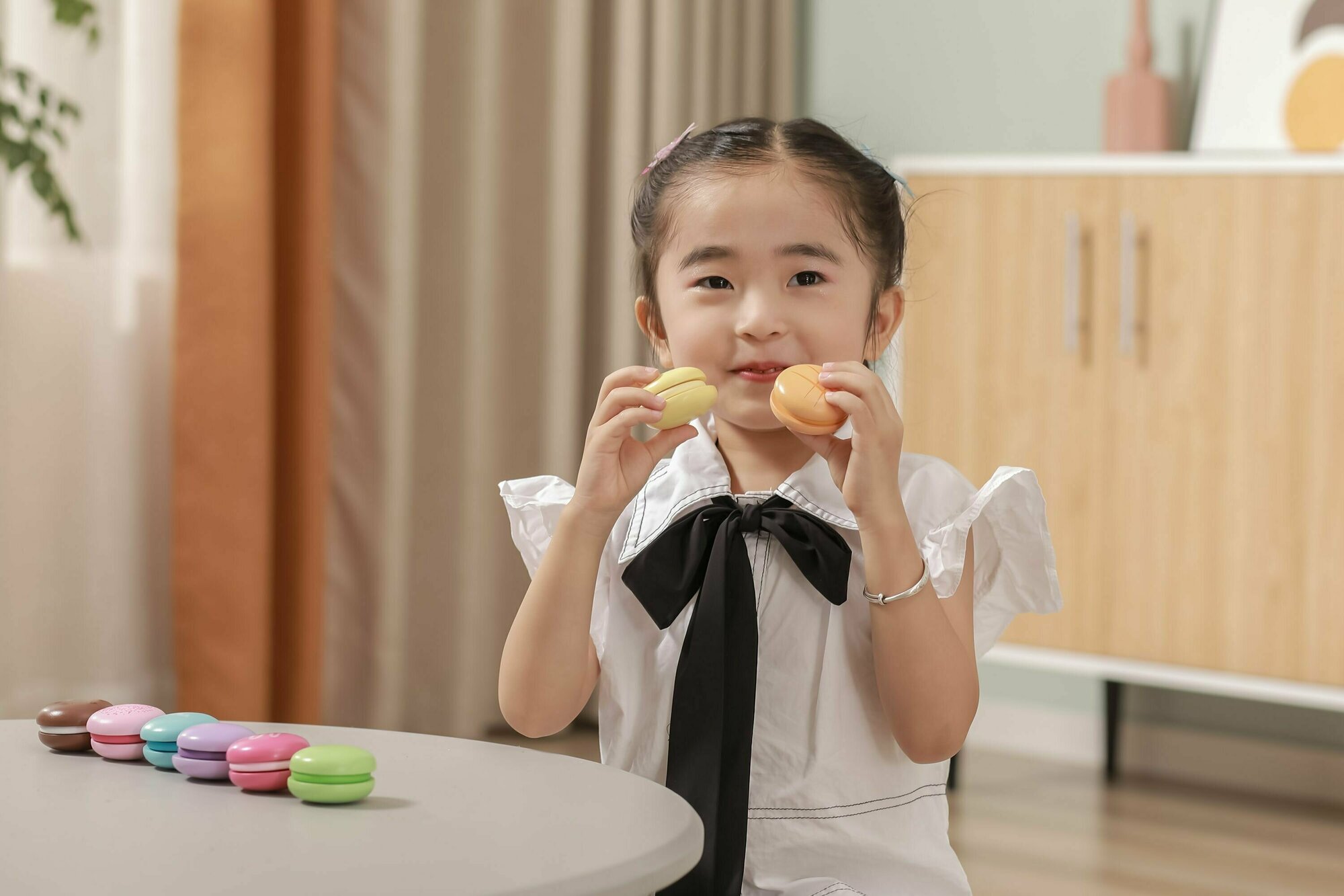Игрушечная еда Viga Toys Печенье Макарон обязательно понравится маленьким сладкоежкам в возрасте от 18 месяцев! Играя деревянным печеньем малыши смогут представлять себя настоящими кондитерами, или же официантами и продавцами. Им также будет интересно сочетать игрушечную еду с другими ролевыми наборами и аксессуарами Viga Toys.Особенности набора:- содержит 8 разноцветных игрушечных пирожных, невероятно похожих на настоящие кондитерские изделия;- каждый десерт состоит из двух частей, которые соединяются текстильной застежкой (липучкой);- малыши смогут сочетать разные половинки печенья, создавая новые цветовые комбинации;- деревянные половинки закруглены и тщательно отшлифованными для безопасности вашего малыша.Набор Viga Toys выполнен из экологически чистого сертифицированного бука и окрашен вручную нетоксичными красителями на водной основе. Продукция отвечает стандартам качества и безопасности детских игрушек.