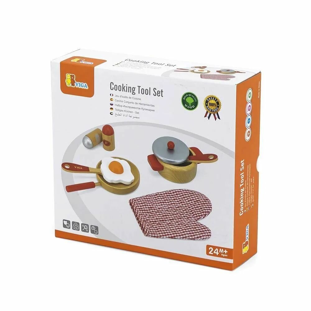 А вы думали о том, что даже известные повара когда-то были детьми? Возможно, их любовь к профессии зародилась, когда они с важным видом готовили из песка свои первые кулинарные шедевры. Игровой набор от Viga Toys Маленький повар предназначен для малышей от 2 лет. Он позволит окунуться в магию собственной кухни и почувствовать себя великим кулинаром. Ребенок сможет самостоятельно, без помощи взрослых, приготовить свои виртуальные блюда и даже приправить их воображаемыми специями из деревянной перечницы. Он с легкостью пожарит игрушечную яичницу или наварит импровизированного супа с посудой из набора. В детский кухонный набор входят: сковорода с яйцом и кастрюля с крышкой, кухонная лопатка и половник, две баночки для специй, прихватка. Все элементы выполнены в контрастных красно-белых цветах и исключительно из природных материалов. Они максимально реалистичные и детально проработанные. С таким набором кулинара играть в ролевые игры станет еще интереснее. Дети будут готовить то, что посчитают нужным, и при этом оставаться в полной безопасности. Они смогут дать волю фантазии, станут более креативными и уверенными в своих способностях. Игровой набор от Viga Toys Маленький повар рекомендован для детских садов и центров развития. Подходит для обучения в рамках методик Монтессори и Реджио.