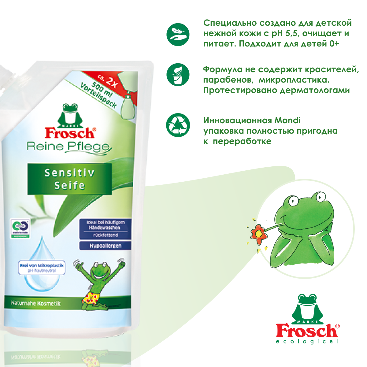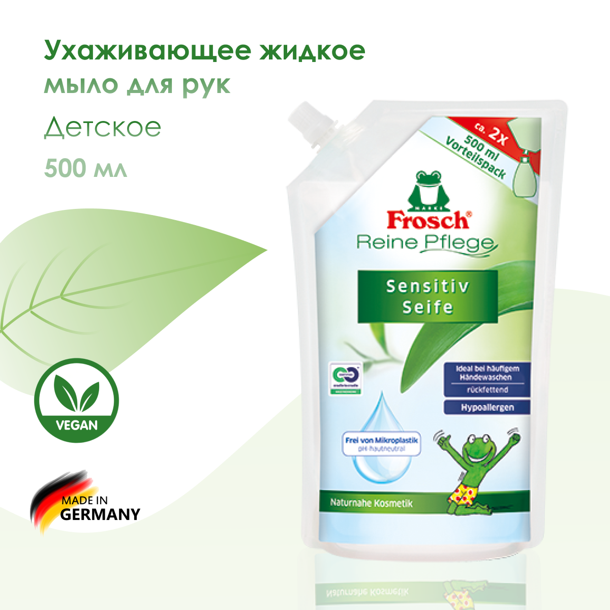 Детское ухаживающее жидкое мыло для рук Frosch — это мягко ухаживающее мыло, нежные увлажняющие компоненты которого специально разработаны под различные потребности чувствительной детской кожи. Ухаживающее детское мыло Frosch при каждом мытье рук защищает кожу от пересушивания. Кроме того, питательные, смягчающие компоненты сохраняют естественную защиту кожи и дают приятное ощущение мягкости.