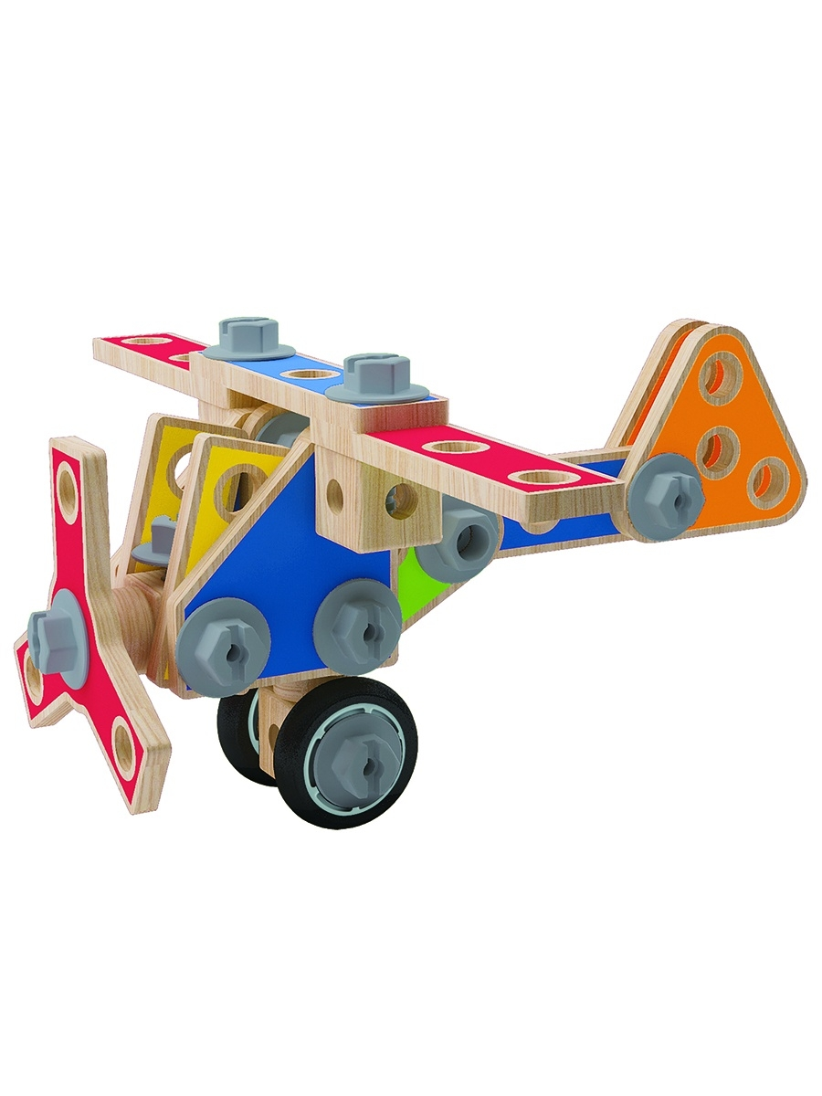 Конструктор научит малыша пользоваться винтиками, отверткой гаечным ключом и гайками, поспособствует тем самым развитию мелкой моторики.Пошаговая инструкция содержит большое количество разнообразных моделей сборки. Когда малыш научится собирать все модели из инструкции, он сможет попробовать придумать новую модель самостоятельно.62 детали в наборе.