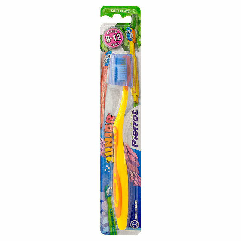 Зубная щетка Pierrot Junior 8-12 лет, мягкаяЗубная щетка Pierrot Junior создана для детей от 8 до 12 лет. Она обязательно понравится веселым и активным подросткам.Мягкие закругленные щетинки и прорезиненная поверхность головки щётки заботливы к нежным детским зубам и деснам, чистка проходит мягко и деликатно.Щетка обеспечивает чистку даже самых труднодоступных участков ротовой полости.Щетка снабжена гигиеническим защитным колпачком, который удобен в использовании.