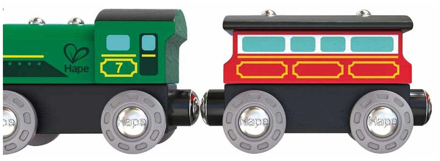 • Игрушка совместима со всеми железнодорожными линиями и рельсами Hape.
