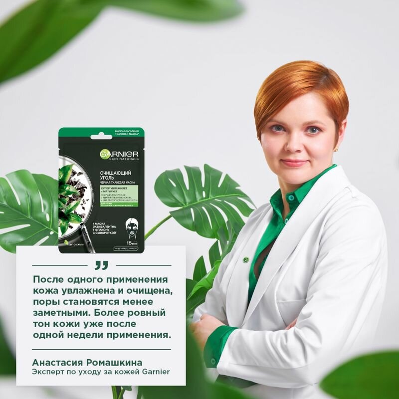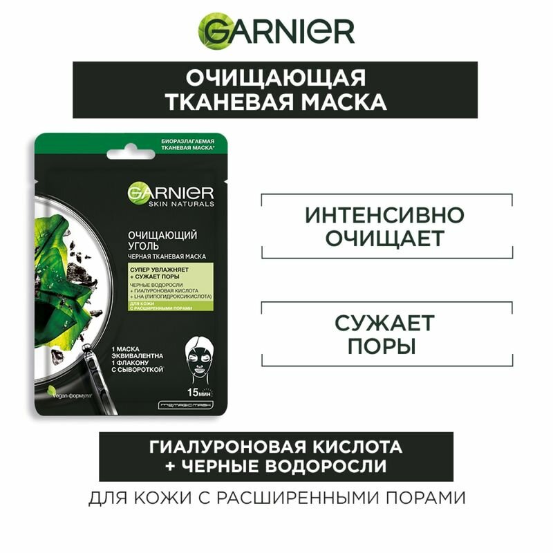 Тканевая маска для лица Garnier Skin Naturals Очищающий уголь + Черные водоросли для кожи с расширенными порами 28 мл (C5934400)