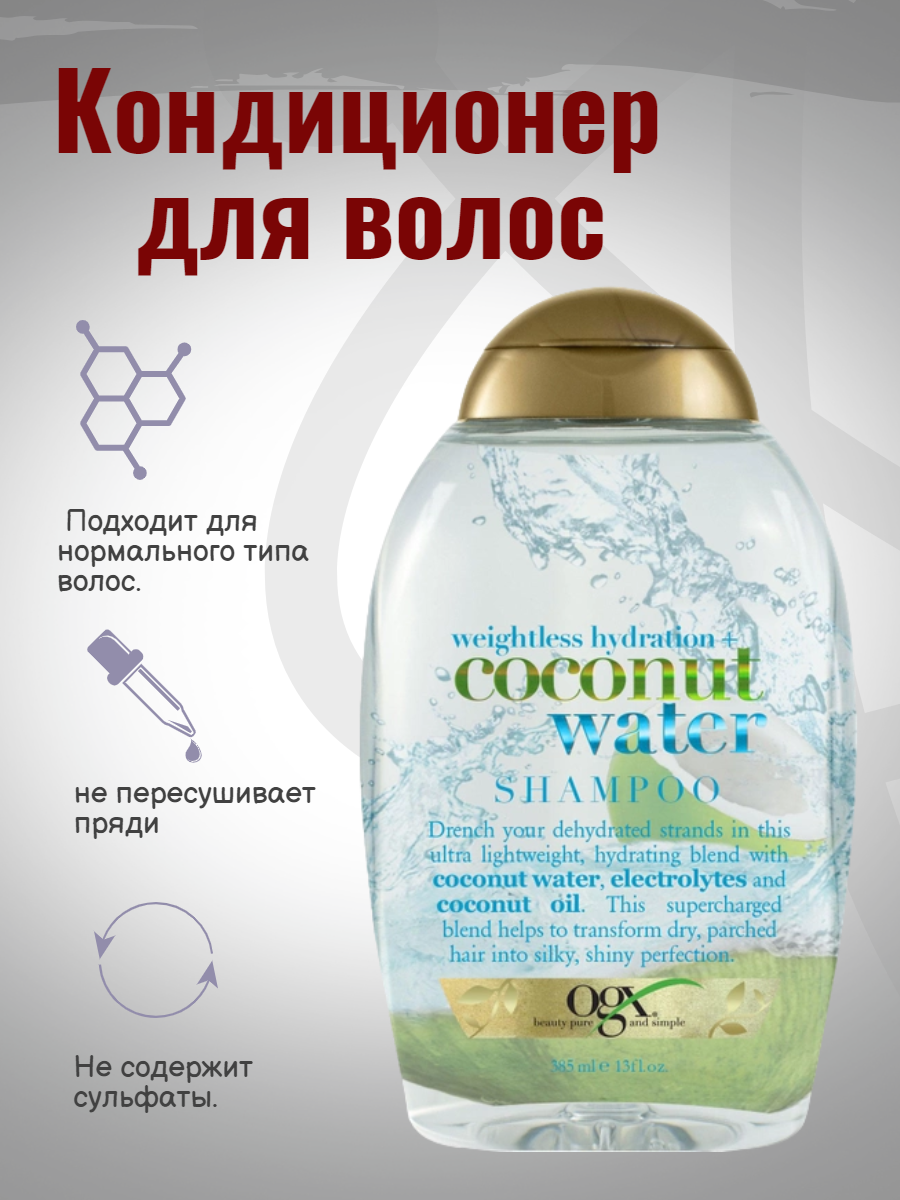 Модель: Шампунь для волос Ogx с кокосовой водой Невесомое увлажнение 385 мл