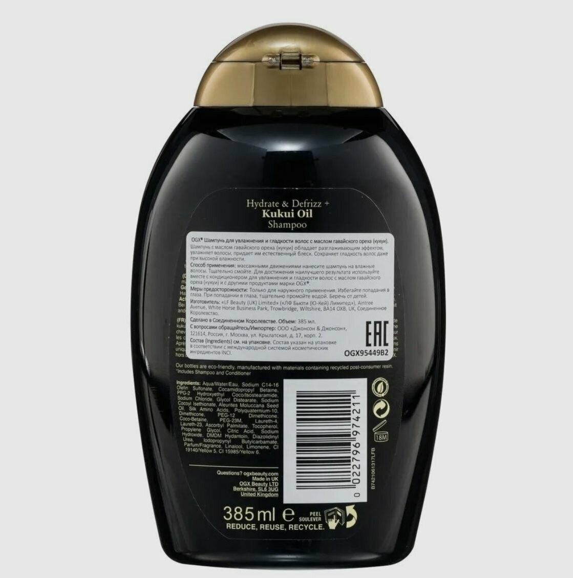 | Состав | Aqua/Water/Eau; Sodium C14-16 Olefin Sulfonate; Cocamidopropyl Hydroxysultaine; PPG-2 Hydroxyethyl Coco/Isostearamide; Sodium Chloride; Hydrolyzed Keratin; Argania Spinosa (Argan) Kernel Oil; Amodimethicone; Dimethicone; Polyquaternium-6; Polyquaternium-10; Glycol Distearate; Laureth-23; Laureth-4; Sorbitan Laurate; Cocamidopropyl Betaine; PEG-120 Methyl Glucose Dioleate; Guar Hydroxypropyltrimonium Chloride; Cetrimonium Chloride; Trideceth-12; Propylene Glycol; Sodium Hydroxide; Citric Acid; Tetrasodium EDTA; Diazolidinyl Urea; Iodopropynyl Butylcarbamate; Parfum/Fragrance; Butylphenyl Methylpropional; Coumarin; Hexyl Cinnamal; Linalool; CI 19140/Yellow 5; CI 15985/Yellow 6 |