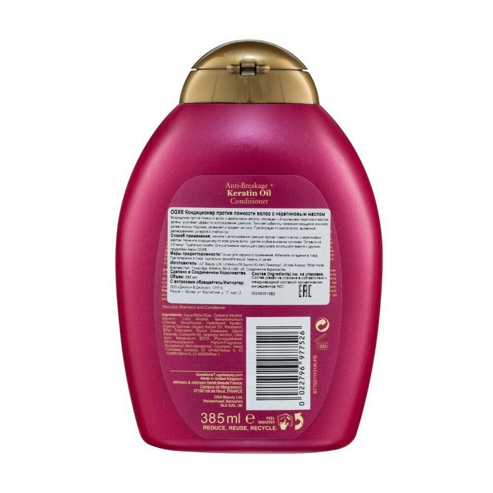 Кондиционер OGX с кератиновым маслом против ломкости волос 385 мл