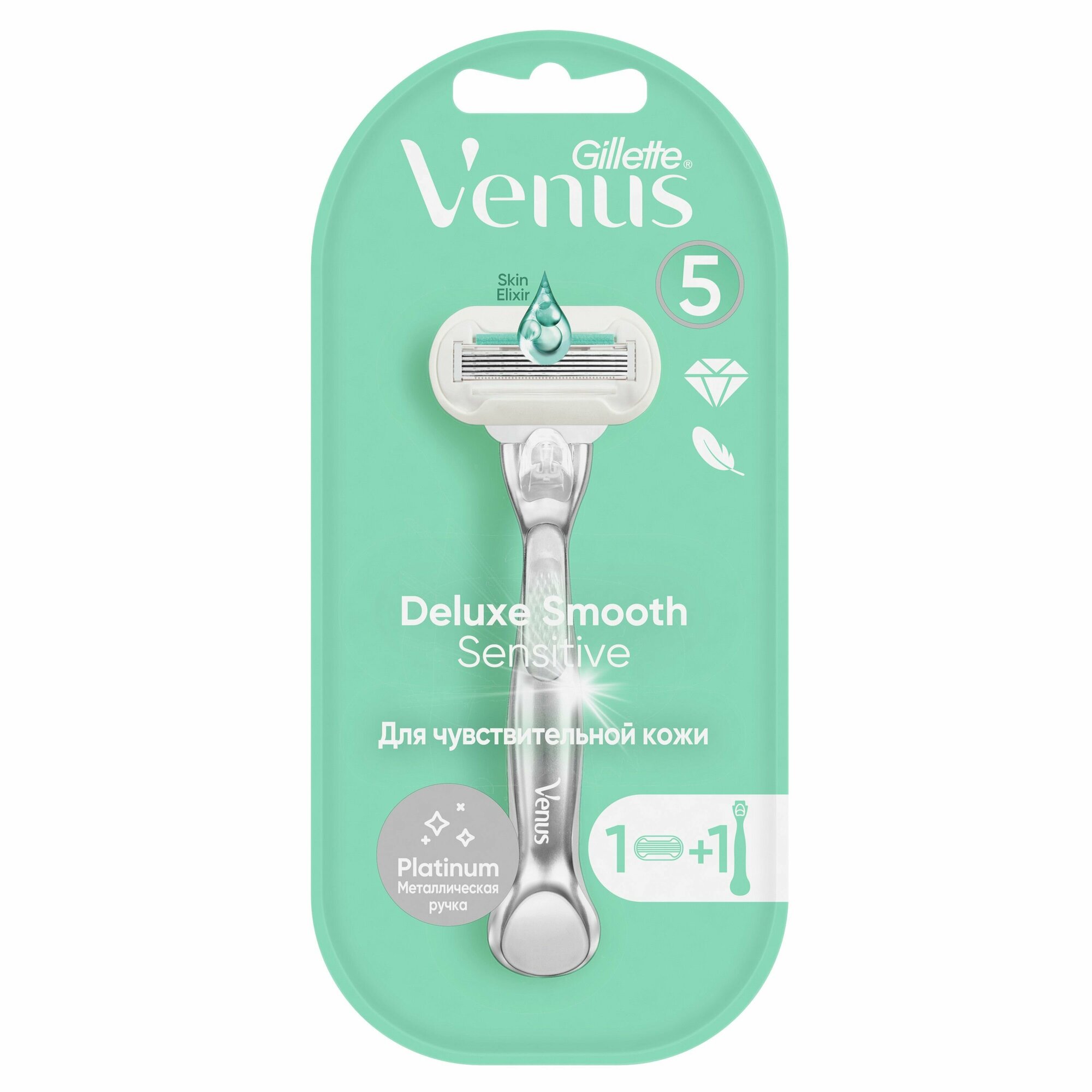 Женская бритва Gillette Venus Platinum идеально подходит для чувствительной кожи! Полоска с эликсиром SkinElixir питает и защищает чувствительную кожу от порезов и раздражения. Каждое из пяти лезвий мягко вытягивает волосок, срезая его ближе к корню. Преимущества: 5 долговечных лезвий удаляют волоски ближе к корню. Результат - гладкость длится дольше! Лезвия с алмазоподобным покрытием и увлажняющей полоской обеспечивают мягкое и плавное скольжение бритвы, легко срезая волоски; Металлическая, прочная ручка улучшает контроль над бритьем и продлевает срок службы бритвы; Полоска с активируемым водой эликсиром SkinElixir защищает нежную кожу от порезов и раздражения; Бритва обладает плавающей головкой, обеспечивающей точность бритья, в том числе в труднодоступных местах. К бритвенной ручке Venus Platinum подходят любые лезвия, кроме Simply Venus и Venus для зоны бикини.