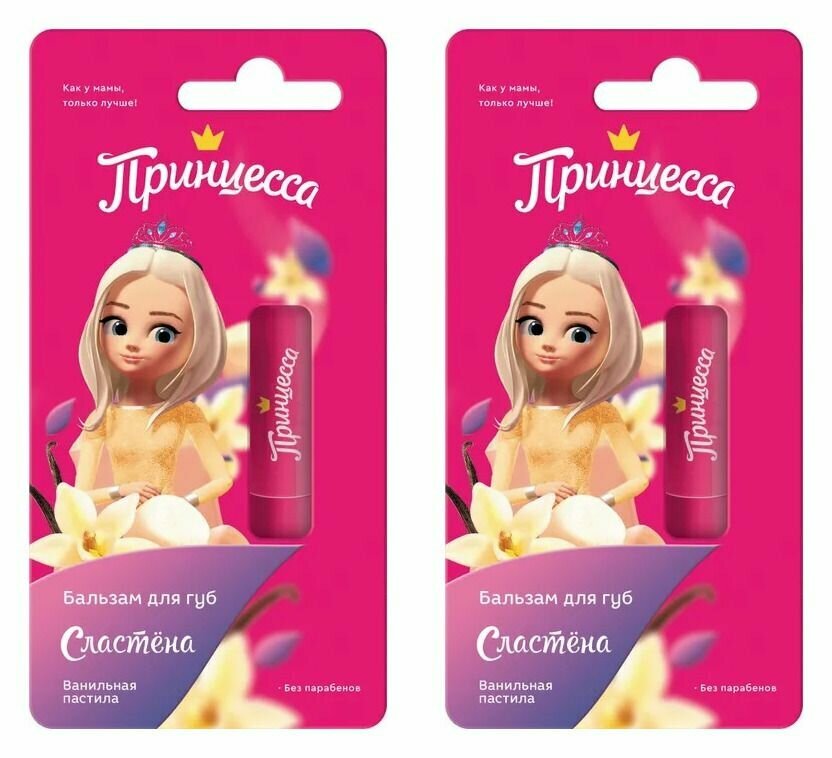 Принцесса предлагает самую вкусную защиту для самых нежных губ! Бальзамы серии Сластена, обладают не только нежным ароматом, но и нежным сладким вкусом. Комплекс из масла макадамии и натуральных экстрактов малины и шелковицы обеспечивает полноценный уход за нежной кожей губ, защищает и увлажняет ее. Бальзам Сластена не содержит парабенов, так как создан специально для маленьких красавиц. Теперь твои губки самые красивые и вкусные на свете!
