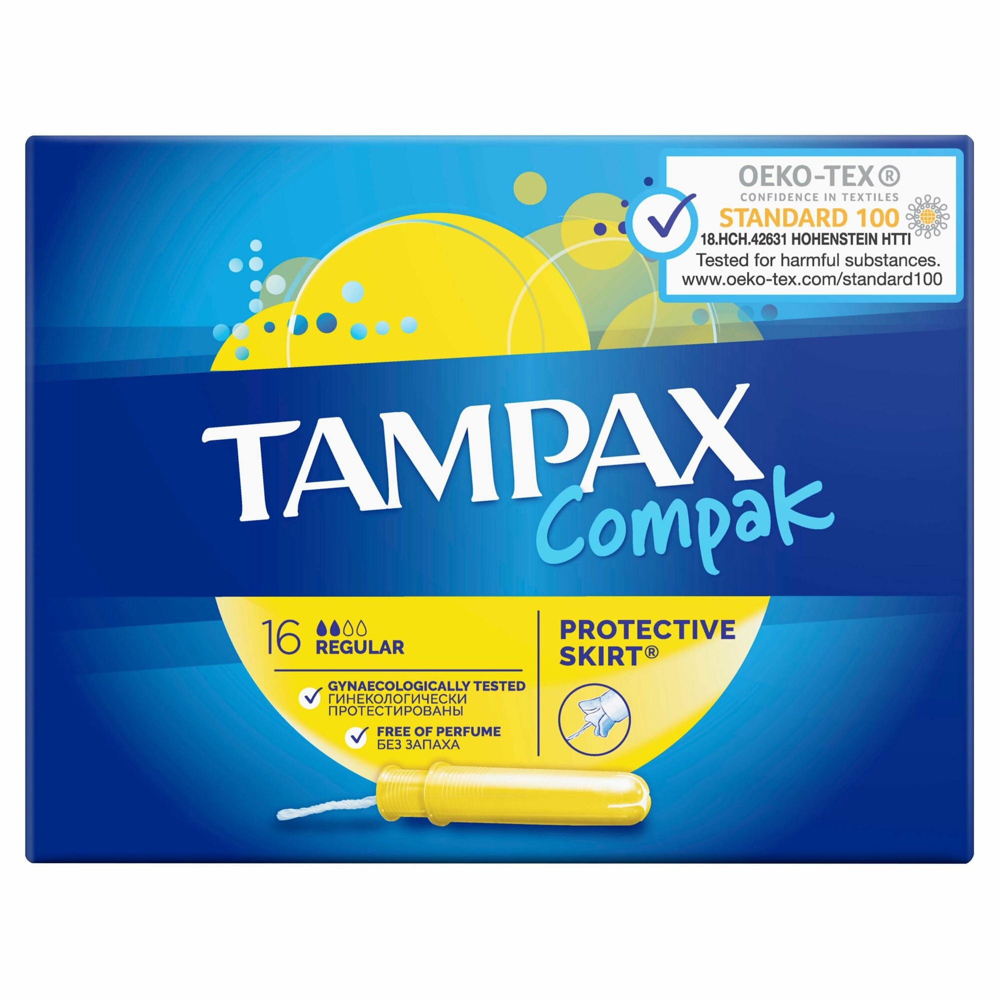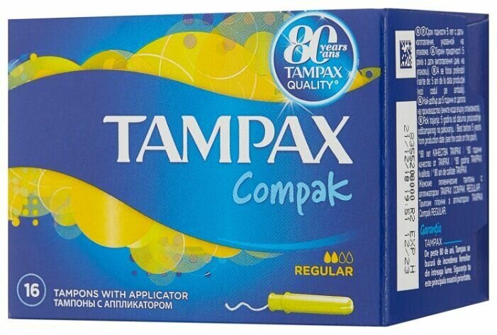 Тампоны Tampax Compak имеют гладкий и компактный аппликатор для удобства в любой ситуации и защитную юбочку, которая помогает предотвратить протекание на срок до 8 часов, обеспечивая надежную защиту Tampax, чтобы ты смогла ощущать чистоту и полную свободу действий.Тампоны Tampax Compak предлагаются в следующих видах с разной степенью впитываемости в зависимости от твоих потребностей в критические дни: Tampax Compak Regular для слабых и умеренных выделений, Tampax Compak Super для умеренных и интенсивных выделений и Tampax Compak Super Plus для интенсивных выделений.С тампоном Tampax можно плавать, бегать, прыгать и танцевать! Не существует никаких ограничений ни по возрасту, ни по комплекции. Благодаря легкому и удобному введению тампоны Tampax идеальны для начинающих! Преимущества:До 8 часов надежной защиты в любой ситуации при умеренных выделениях.Выдвижной аппликатор обеспечивает компактность, при этом не влияет на размер тампона, для защиты в любой ситуации вне дома.Впитывающие желобки направляют жидкость внутрь тампона.Защитная юбочка в нижней части тампона Compact помогает предотвратить протекание.Цветная упаковка легко открывается и защищает поверхность тампона, поэтому, уходя из дома, его всегда можно взять с собой, положив в карман или сумочку.