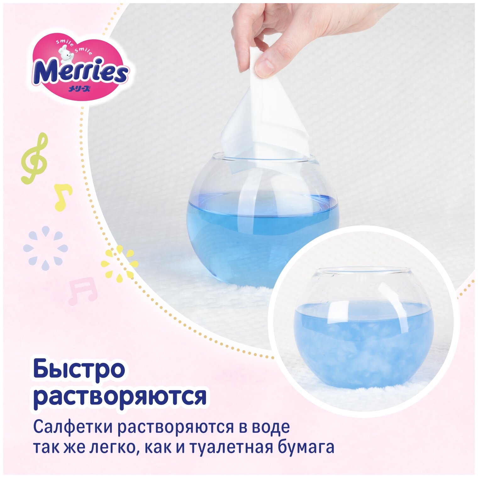 Мягкие толстые влажные салфетки Merries обладают уникальным пористым слоем, который удерживает частички детского стула. Загрязнения собираются в маленькие углубления на поверхности салфетки и легко удаляются с кожи. Салфетки Merries пропитаны специальным лосьоном, который легко и без следа удаляет загрязнения. Больше нет необходимости протирать одно и то же место несколько раз, благодаря чему кожа малыша не подвергнется лишнему трению и раздражения. Дополнительные преимущества влажных салфеток Merries:Мягкие и толстые.В состав салфеток входит природный увлажнитель, который защищает кожу.Имеют слабую кислотность, оптимальную для кожи малыша.Не содержат ароматизаторов и спирта.Можно использовать для очищения рук и тела.Можно использовать с самого рождения.