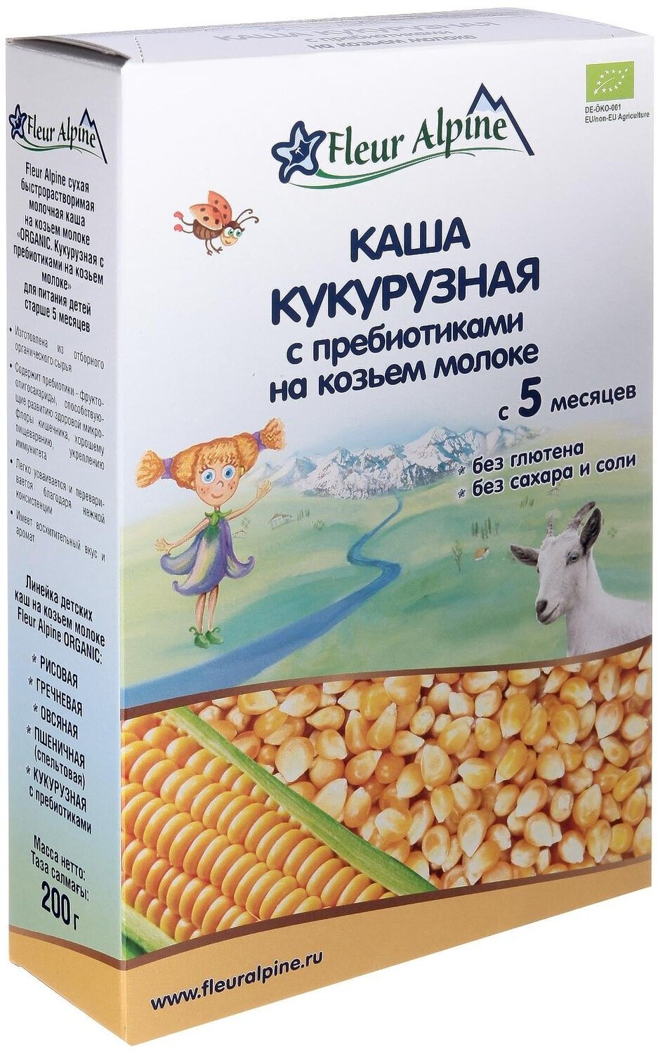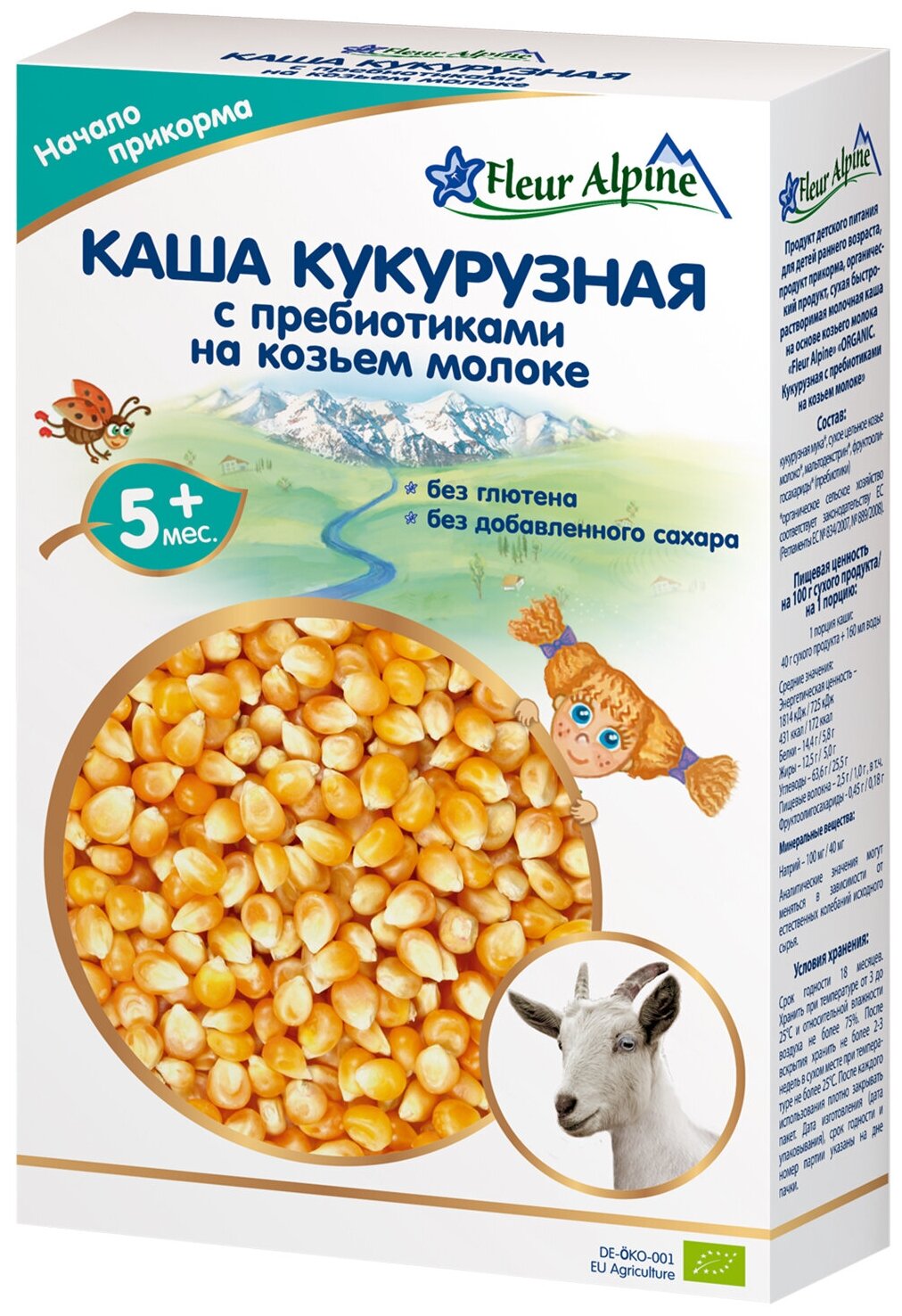 Каша на козьем молоке Fleur Alpine Органик Кукурузная с пребиотиками 200 г