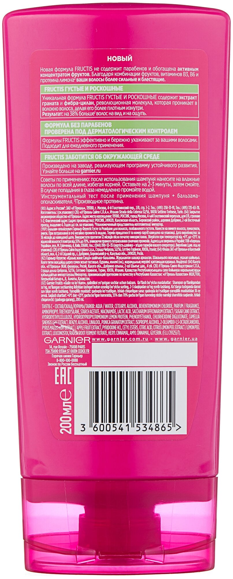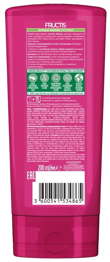 Бальзам-ополаскиватель Garnier Fructis Густые и роскошные для волос лишенных густоты 200 мл (C5134602)